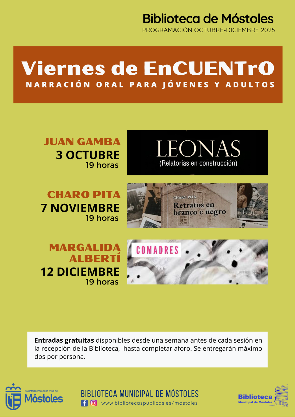 El viernes 7 de noviembre tendrá lugar una nueva jornada de narración oral para adultos, dentro de la programación Viernes de EnCUENTrO, que tiene lugar en la Biblioteca Central una vez al mes. En esta ocasión, será Charo Pita la que trae "Retratos en blanco y negro" para un público joven y adulto, a las 19:00 h. Las entradas son gratuitas, disponibles en la recepción de la Biblioteca, hasta completar aforo y se entregarán un máximo de dos entradas por persona.