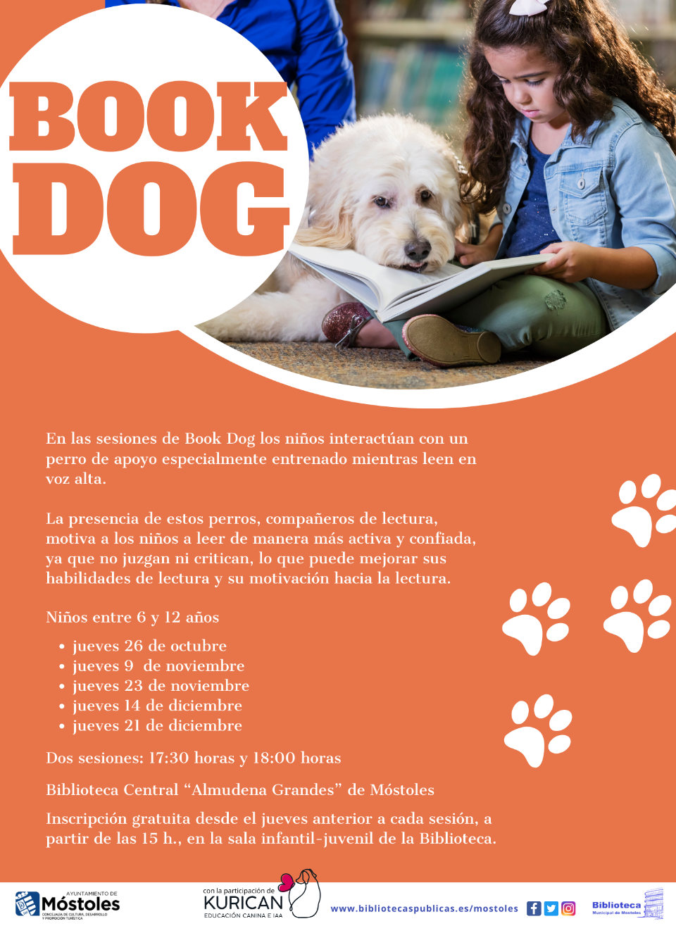 Los interesados pueden encontrar más información en el siguiente enlace: https://www.bibliotecaspublicas.es/mostoles/Actividades/actividades-infantiles/Book-Dog.htmlEste enlace se abrirá en una ventana nueva