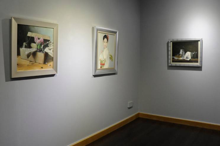 La otra parte de la exposición se centra en el bodegón, en la que la artista pone de relieve la importancia de este en toda la creación pictórica. Se trata de una muestra de bodegones, clásicos y contemporáneos. Un género con el que "me siento cómoda", nos comenta, y en el que "he encontrado un espacio íntimo y cotidiano, un lugar donde representar la grandeza de lo sencillo y la belleza de lo efímero". Composiciones inspiradas en el arte del ikebana, bonsáis junto a humildes objetos que nos rodean en la vida cotidiana, pero que Noelia convierte en protagonista de sus+ obras".