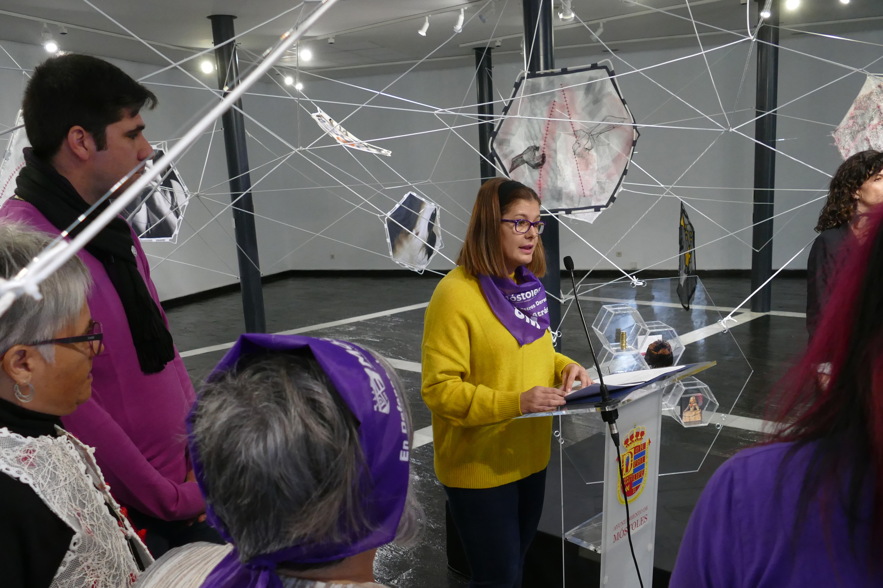 Imagen en alta resolución. Este enlace se abrirá mediante lightbox, puede haber un cambio de contextoUna maraña de hilos enredados cual panal de abejas llena la sala 1 de exposiciones del Centro Cultural Villa de Móstoles desde ayer. La obra, realizada por 8 artistas e investigadores sobre feminismo (Virginia D´Angelo, Carmen Imbach, Ana Zlatkes, Graciela Henríquez, Elizabeth Bovi, Amalie Leschamps, Óscar Marchetti y Alfredo Rosenbaum), pretende reflejar la intrincada red en la que esta sociedad, construida sobre principios patriarcales, envuelve y atrapa a las mujeres. Una especie de panal de miel, donde ellas luchan por romper los techos de cristal que frenan su avance.