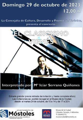 El Museo de la Ciudad acoge el domingo 29, a las 12:00 h, el concierto de piano "El Clasicismo Vienés", interpretado por Mª Iciar Serrano Quiñones.