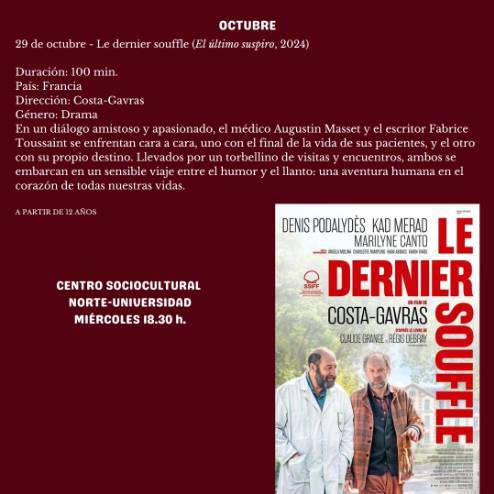 La película, que se proyectará el miércoles 29 a las 18:30 h en el Centro Sociocultural Norte-Universidad, narra el diálogo de tono filosófico entre el doctor Augustin Masset y el reconocido escritor Fabrice Toussaint, quienes reflexionan sobre la vida y la muerte. A través de una sucesión de encuentros, el médico actúa como guía y el escritor como viajero, impulsado a enfrentar sus temores y angustias más profundas. Se trata de una danza poética donde cada paciente encarna un mosaico de emociones, risas y lágrimas… Un viaje hacia el corazón mismo de la existencia.