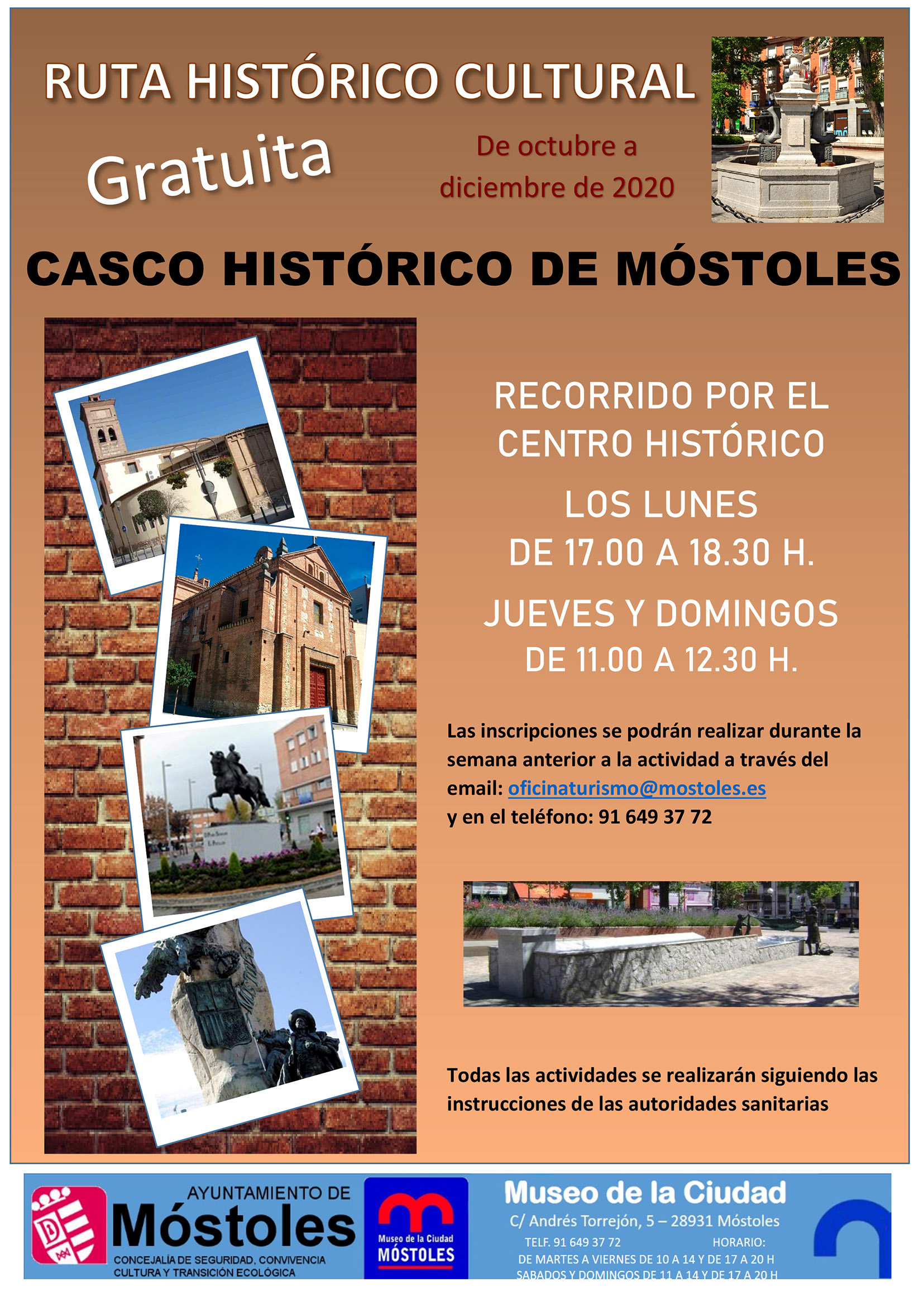 El sábado 12, se llevarán a cabo visitas guiadas a la Casa de Andrés Torrejón y al Museo de la Ciudad. Las inscripciones para estas actividades se reservan durante la semana anterior a cada actividad a través del email: oficinaturismo@mostoles.es y en teléfono: 91 649 37 72. El aforo será de 5 personas por cada visita. Las visitas se realizan siguiendo los protocolos de seguridad en materia sanitaria recomendados por las autoridades competentes respecto al COVID-19.