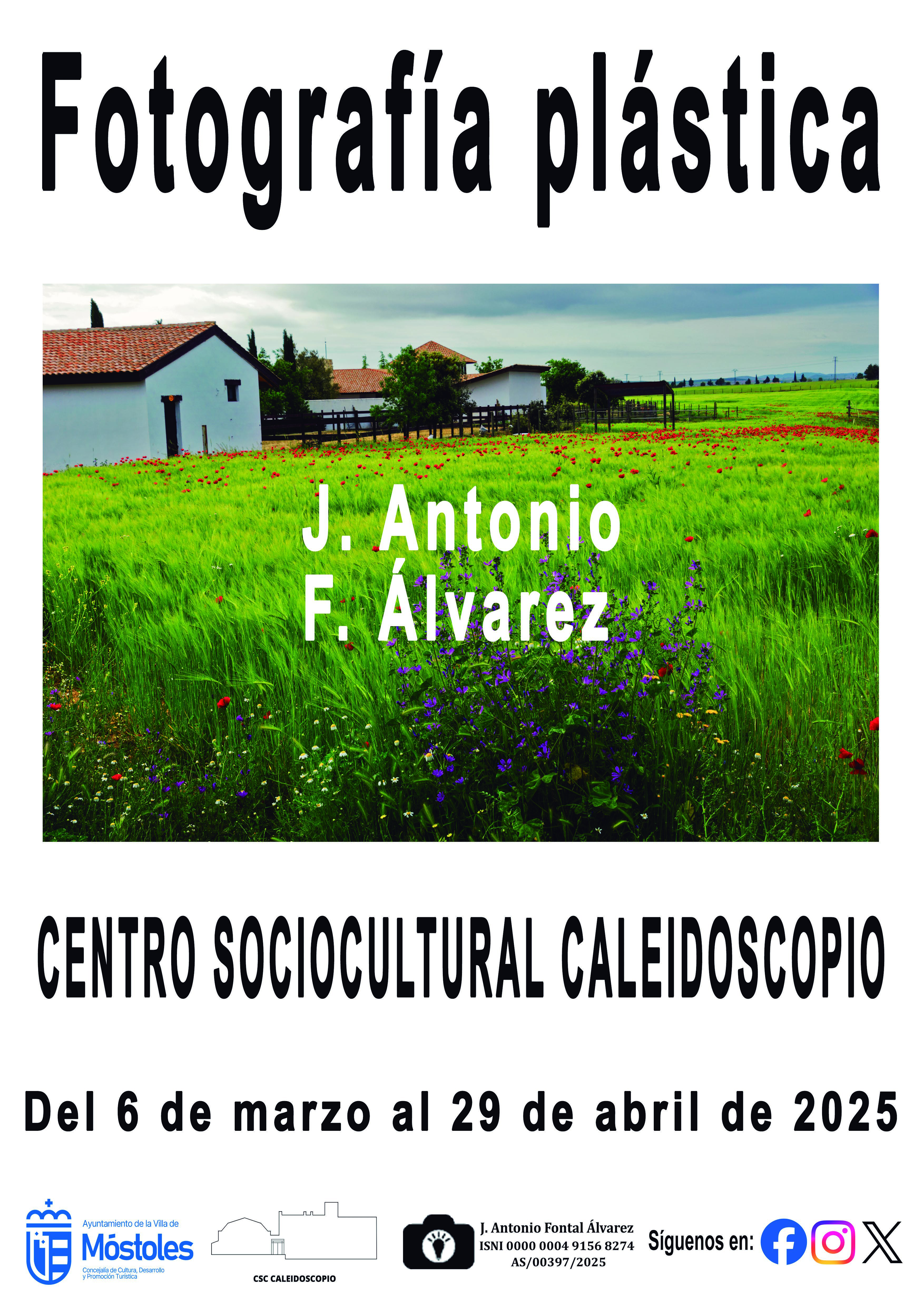 El Ayuntamiento de Móstoles, a través de la Concejalía de Cultura, Desarrollo y Promoción Turística, trae al Centro Sociocultural Caleidoscopio la exposición "Fotografía plástica", de José Antonio Fontal Álvarez. La obra de este pintor fotográfico español se podrá visitar del 6 de marzo al 29 de abril, de lunes a viernes, de 9:00 h a 20:30 h.