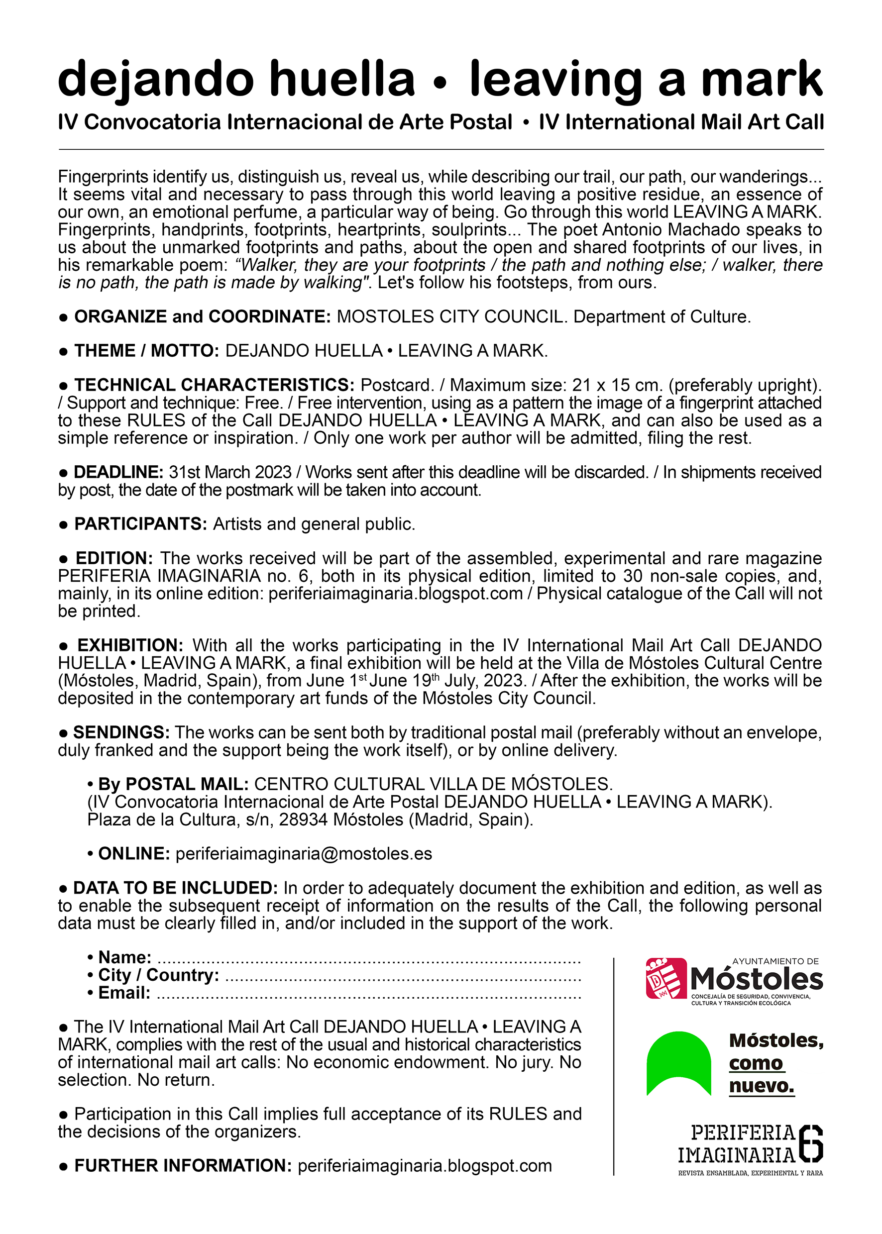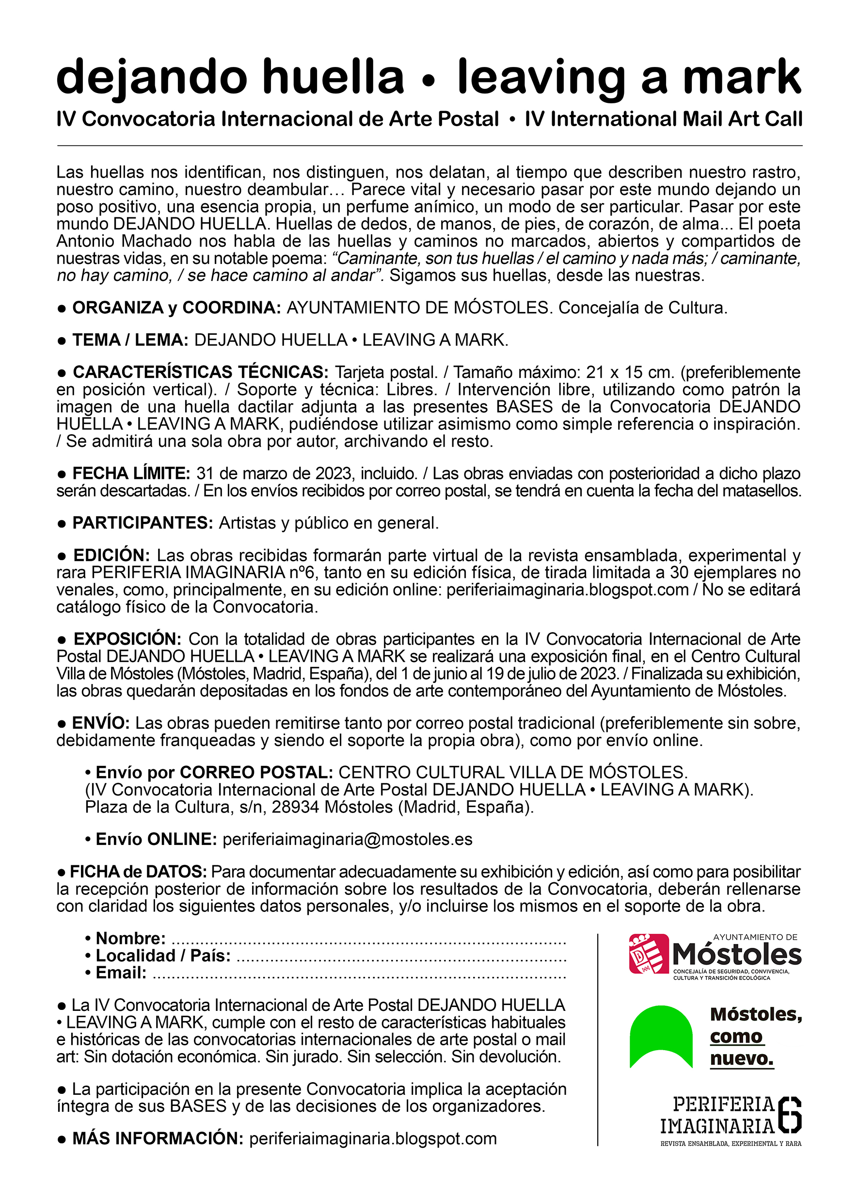 IV Convocatoria Internacional de Arte Postal "Dejando huella-Leaving a mark" 2023