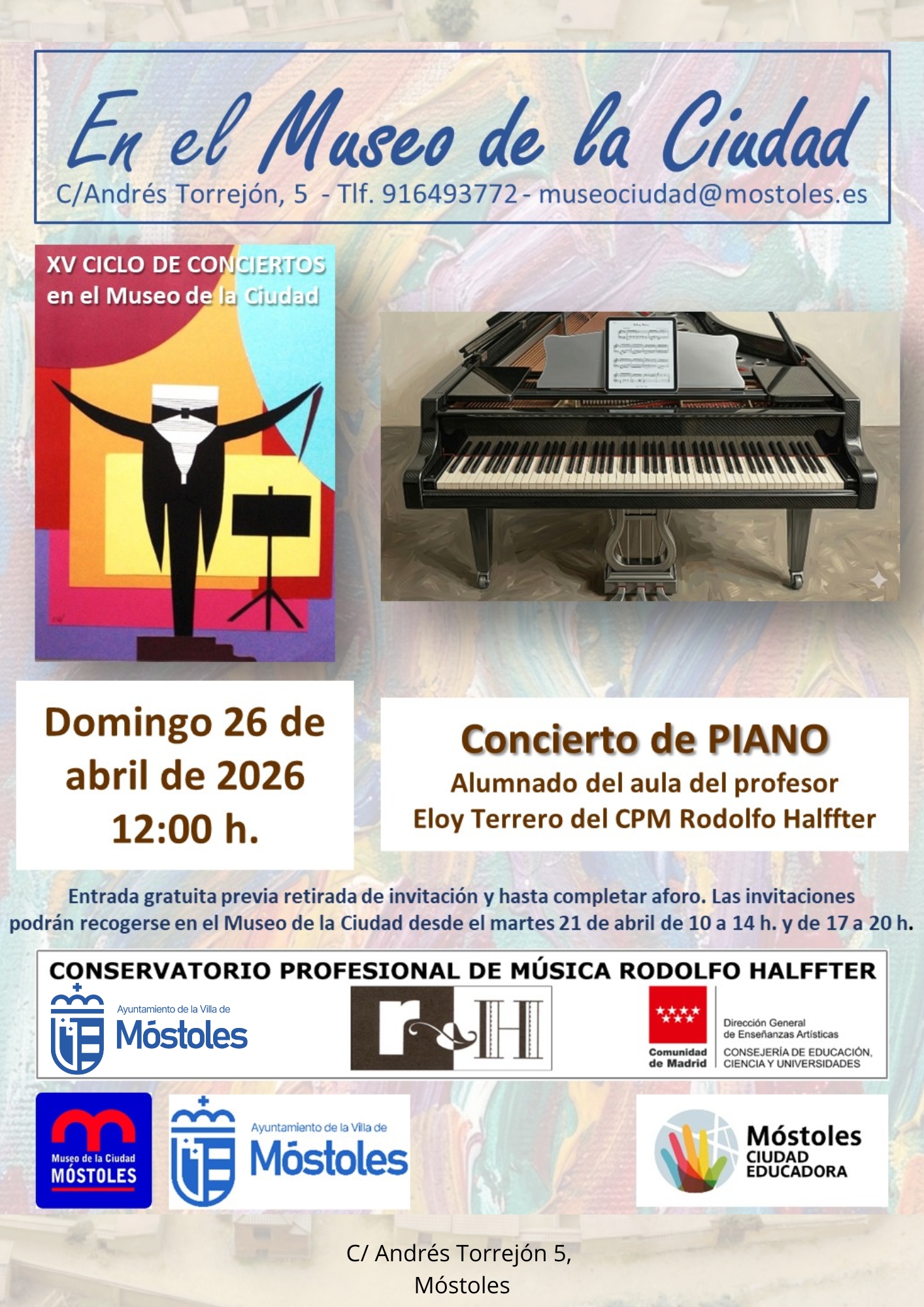 "Concierto de piano", dentro del XV Ciclo de Conciertos en el Museo de la Ciudad, a las 12:00 horas, a cargo del alumnado del aula del profesor Eloy Terrero, del Conservatorio Profesional de Música Rodolfo Halffter. Entrada gratuita previa retirada de invitaciones en el propio centro a partir del martes 21 de abril.