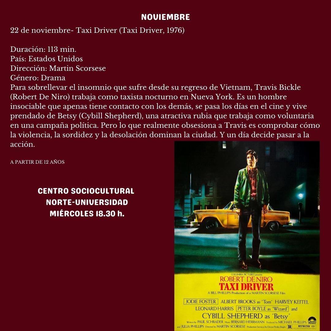 Para sobrellevar el insomnio que sufre desde su regreso de Vietnam, Travis Bickle(Robert De Niro) trabaja como taxista nocturno en Nueva York. Es un hombre insociable que apenas tiene contacto con los demás, se pasa los días en el cine y vive prendado de Betsy (Cybill Shepherd), una atractiva rubia que trabaja como voluntaria en una campaña política. Pero lo que realmente obsesiona a Travis es comprobar cómo la violencia, la sordidez y la desolación dominan la ciudad. Y un día decide pasar a la acción.