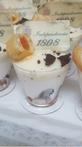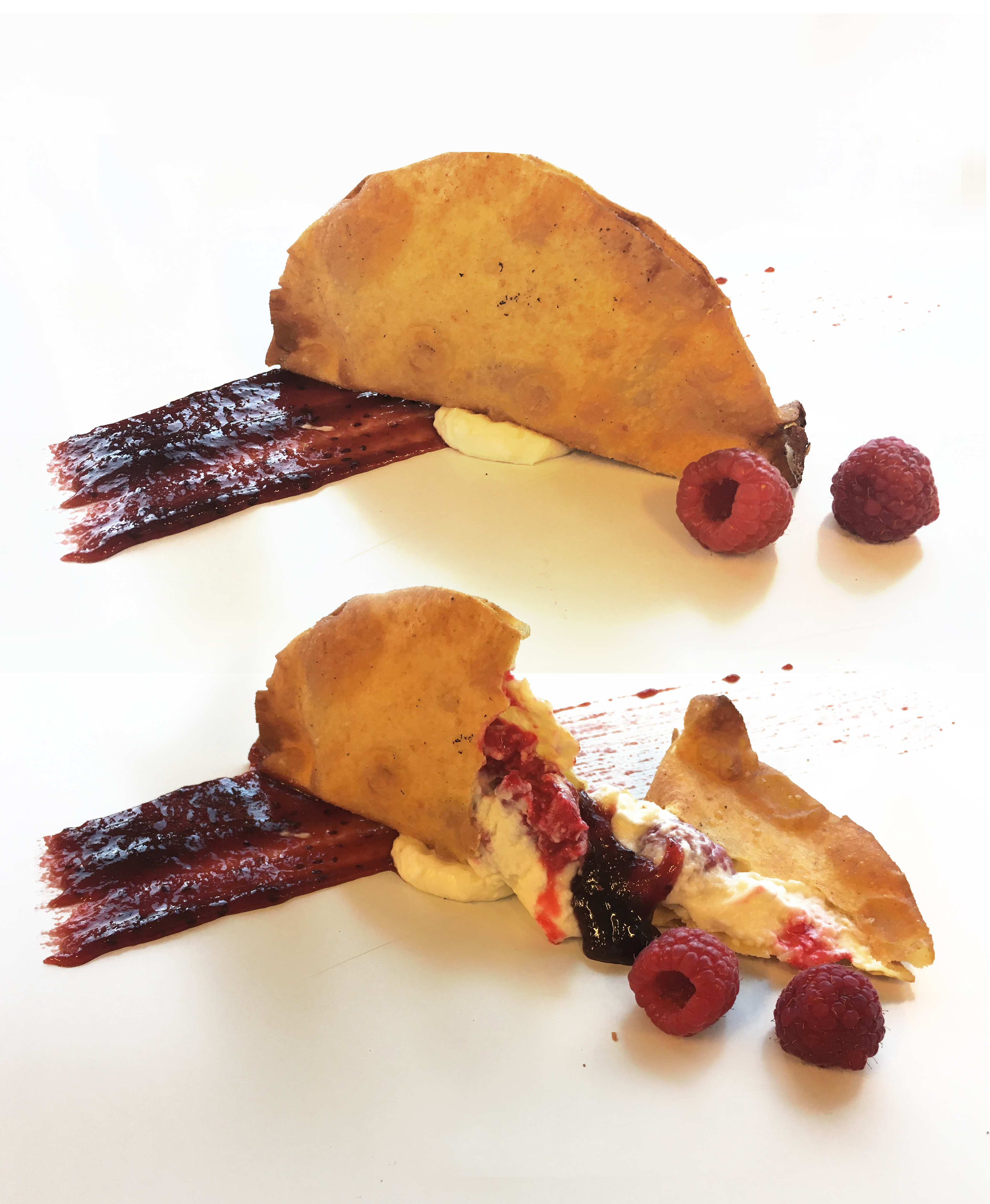 "Representa la crudeza del 2 de Mayo en Madrid empezando por el color rojo de la fruta. Todo ello dentro de una empanadilla con la forma de gorro de Napoleón".