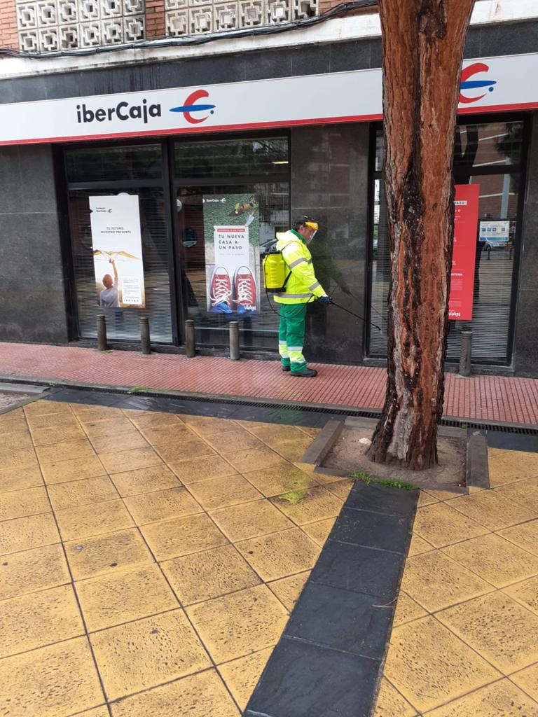 Se ha reforzado también la limpieza y desinfección en los entornos de las zonas sensibles, como los centros sanitarios, centros de alimentación, supermercados, farmacias, fruterías, panaderías, bancos y establecimientos cuya apertura está permitida por la legislación y en donde se está detectando más afluencia de personas. En estos espacios se están trabajando también con equipos de hidropresión con agua y desinfectantes. Hasta el momento se han desinfectado más de 500 espacios sensibles. La mayor carga de trabajo se produce en fines de semana en los entornos de los supermercados y centros de salud.