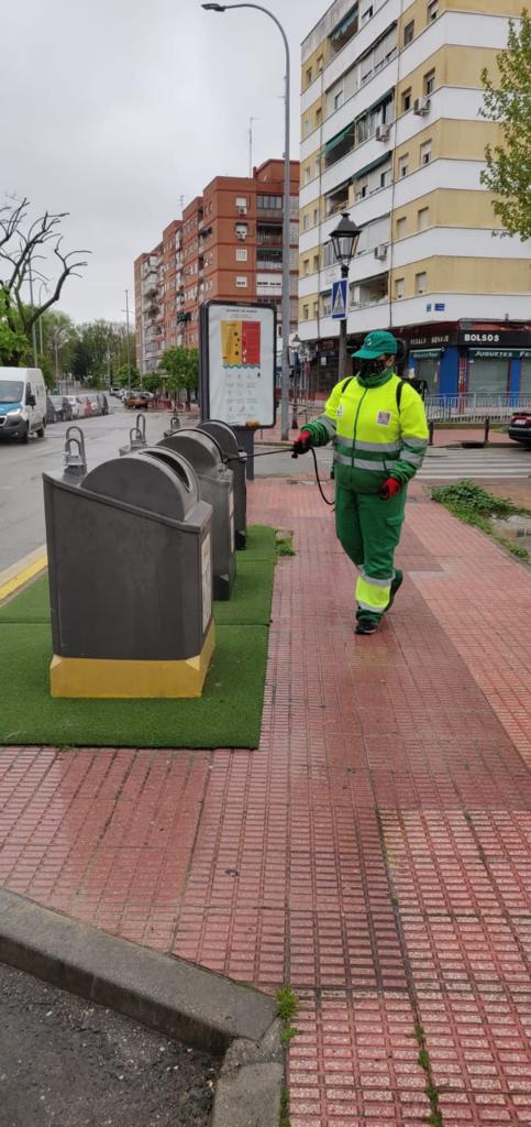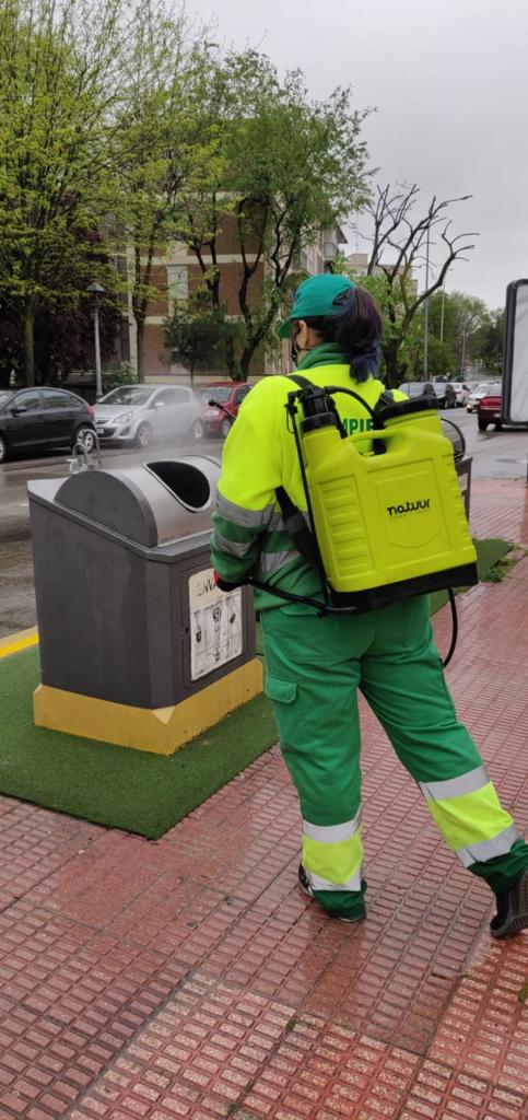 Todas las aceras de Móstoles han sido desinfectadas a través de hidropresión manual. En total se han hecho 2.000 baldeos manuales llevadas a cabo por los operarios, dotados de mochilas pulverizadoras cargadas con agua y desinfectante. Igualmente se trabaja en la limpieza y desinfección de contenedores, tanto soterrados como de superficie, así como en sus alrededores. Se ha operado sobre cerca de 4.000 contenedores de basura orgánica, envases, papel y cartón y vidrio y sus alrededores.