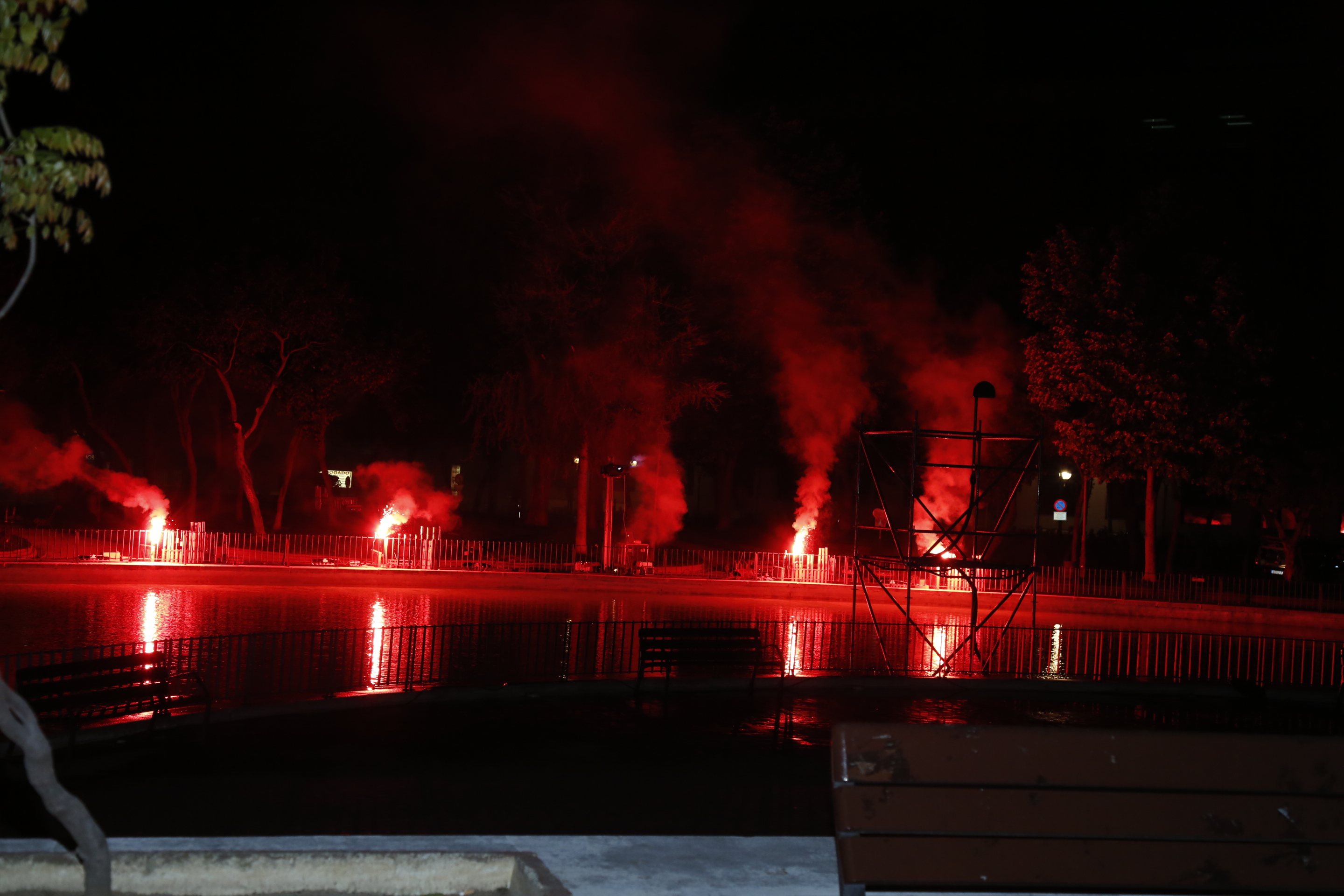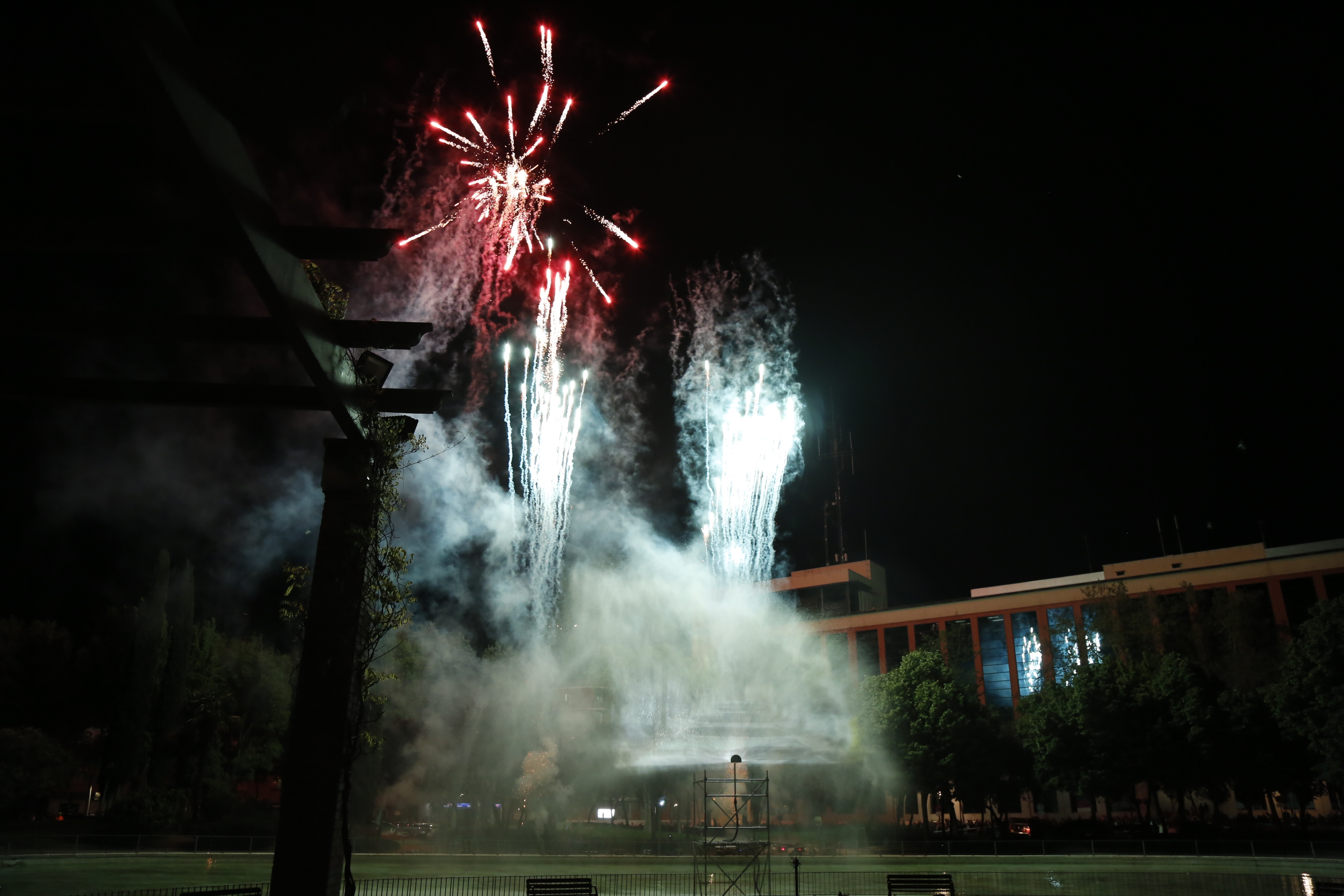 Espectaculo pirotecnico 1Imagen en alta resolución. Este enlace se abrirá mediante lightbox, puede haber un cambio de contextoEspectaculo pirotecnico 1Sábado, 30 de abril de 2016.- En torno a un novedoso espectáculo pirotécnico de luz y sonido, miles de vecinos se han reunido en el lago del parque Cuartel Huerta para celebrar las tradicionales Fiestas del 2 de Mayo de Móstoles, declaradas de Interés Turístico Regional.