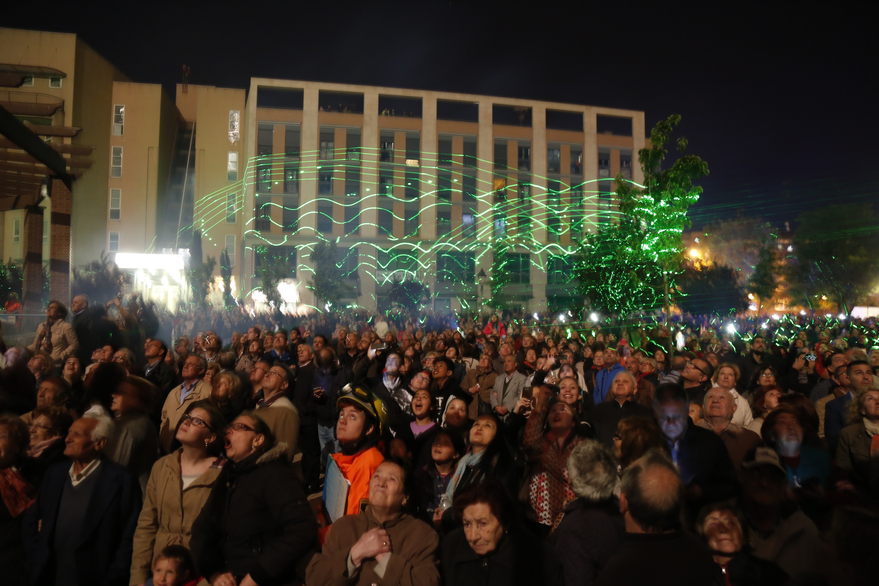 Este espectáculo novedoso, lleno de luces, sonidos, fuego y pirotecnia, se desarrolló sobre el negro manto de la noche, ofreciendo de este modo un fantástico cuadro de características multicolores, que evocó en el espectador sentimientos y emociones de serena felicidad. En total se lanzaron 225 kilos de pólvora que, combinados con música e imágenes proyectadas en una pantalla de agua, emocionaron a los cerca de ocho mil vecinos y vecinas.