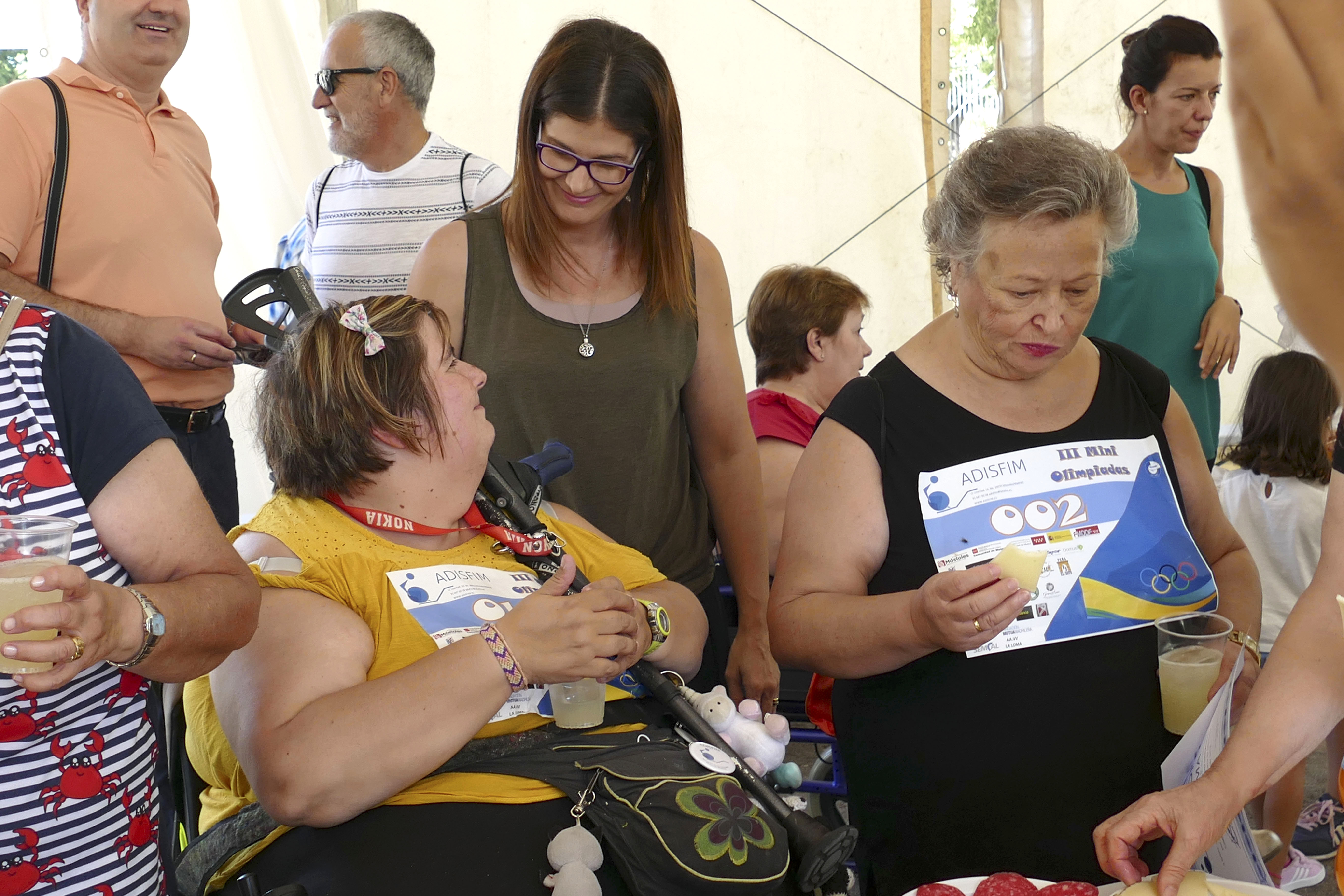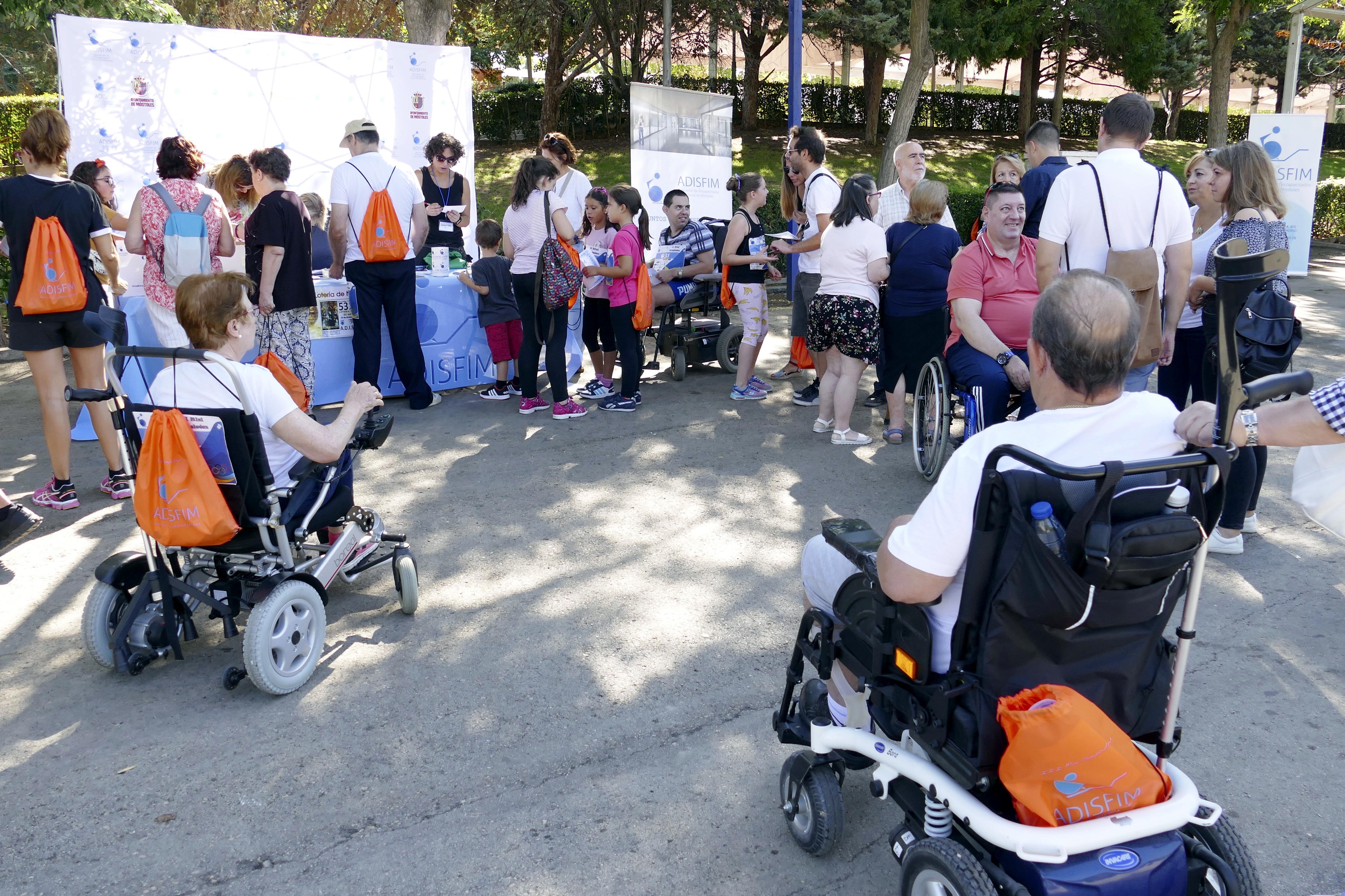 La alcaldesa de Móstoles, Noelia Posse, acompañada de concejales del gobierno municipal, asistió el pasado 22 de septiembre a las 'miniolimpiadas' para discapacitados físicos, organizadas por la Asociación de Discapacitados Físicos de Móstoles (ADISFIM) en el Parque Liana del municipio. La jornada contó con una participación de 105 personas, entre niños y adultos. El dorsal costaba 2€ y era una donación integra para la creación del nuevo centro que tienen proyectada la Asociación en el Pau 4.También se podían adquirir abanicos hechos por usuarios del Taller de Manualidades impartido por su Terapeuta Ocupacional.
