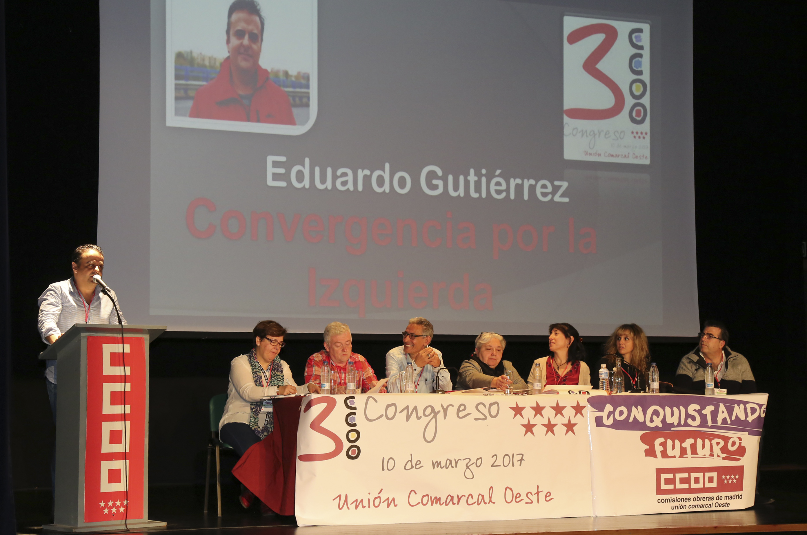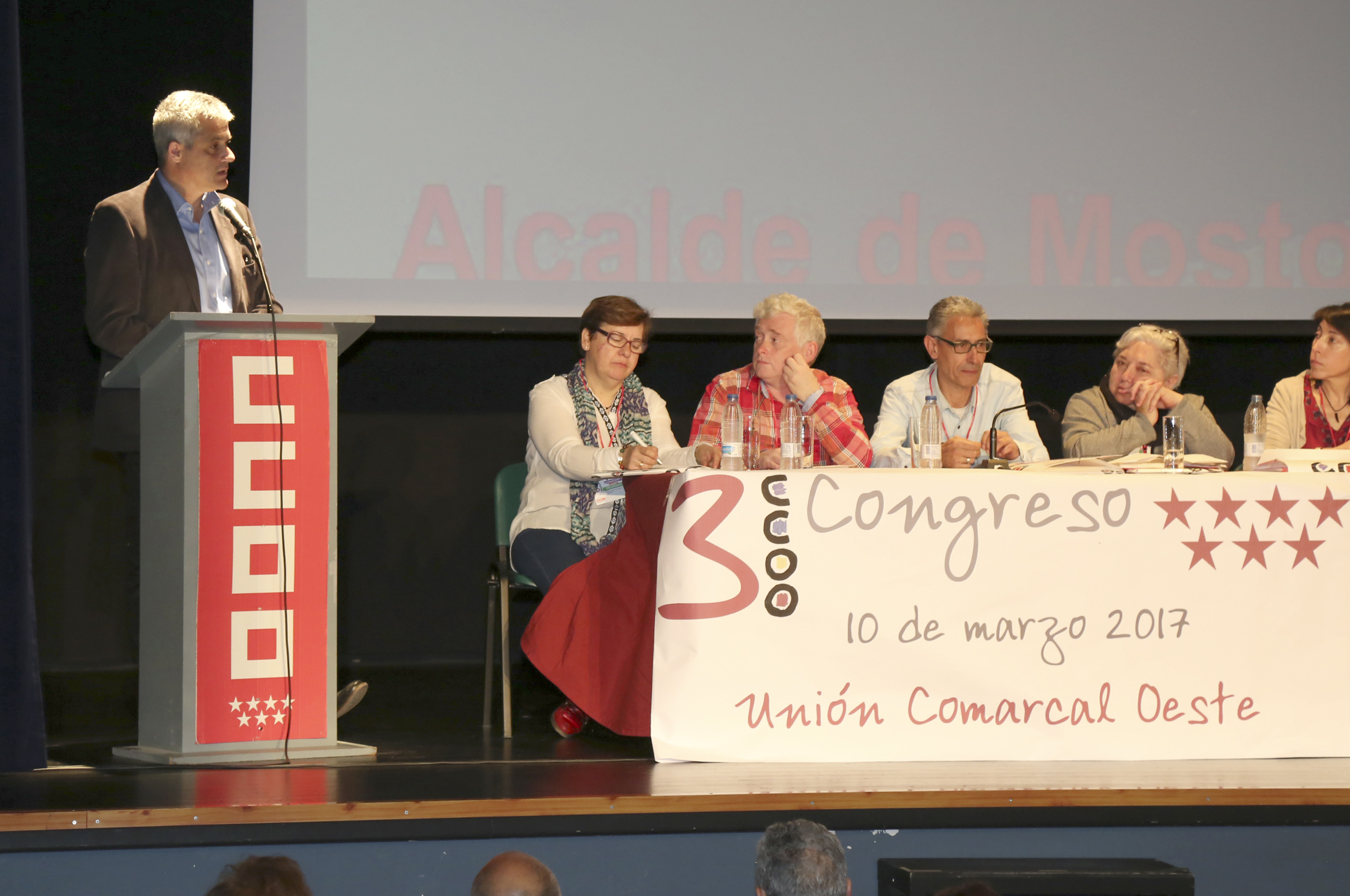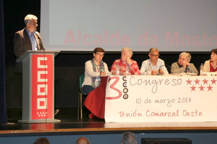 Congreso CCOO 1Imagen en alta resolución. Este enlace se abrirá mediante lightbox, puede haber un cambio de contextoCongreso CCOO 1El alcalde de Móstoles, David Lucas, ha asistido esta mañana como invitado a la apertura del III Congreso de Comisiones Obreras Unión Comarcal Oeste, que se está llevando a cabo en el Salón de Actos de la Junta de Distrito Norte-Universidad del municipio.