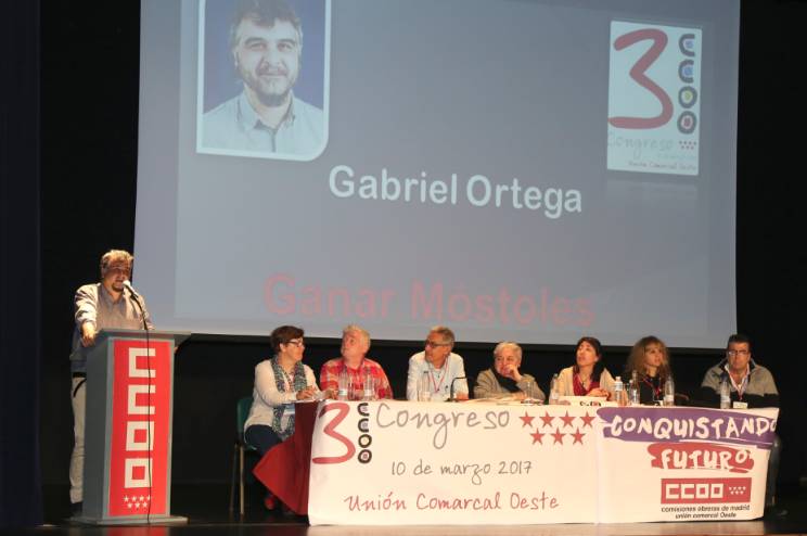 El acto ha arrancado con unas palabras del secretario de organización de CCOO Comarcal Oeste, Eduardo Ortega de la Fuente, quien ha dado paso a la primera intervención, que ha sido del alcalde de Móstoles. Posteriormente, lo ha hecho el concejal de Cultura y Bienestar Social, Gabriel Ortega, el concejal de Urbanismo y Vivienda, Eduardo Gutiérrez, el secretario general de CCOO en Madrid, Jaime Cedrún y el secretario general de CCOO Comarcal Oeste, Ramón González. Asimismo han estado presentes la concejala de Desarrollo Económico, Empleo y Nuevas Tecnologías, Jessica Antolín, la concejala Beatriz Mogrovejo, representantes comarcales de CCOO, UGT, así como los delegados del sindicato con derecho a voto e invitados.