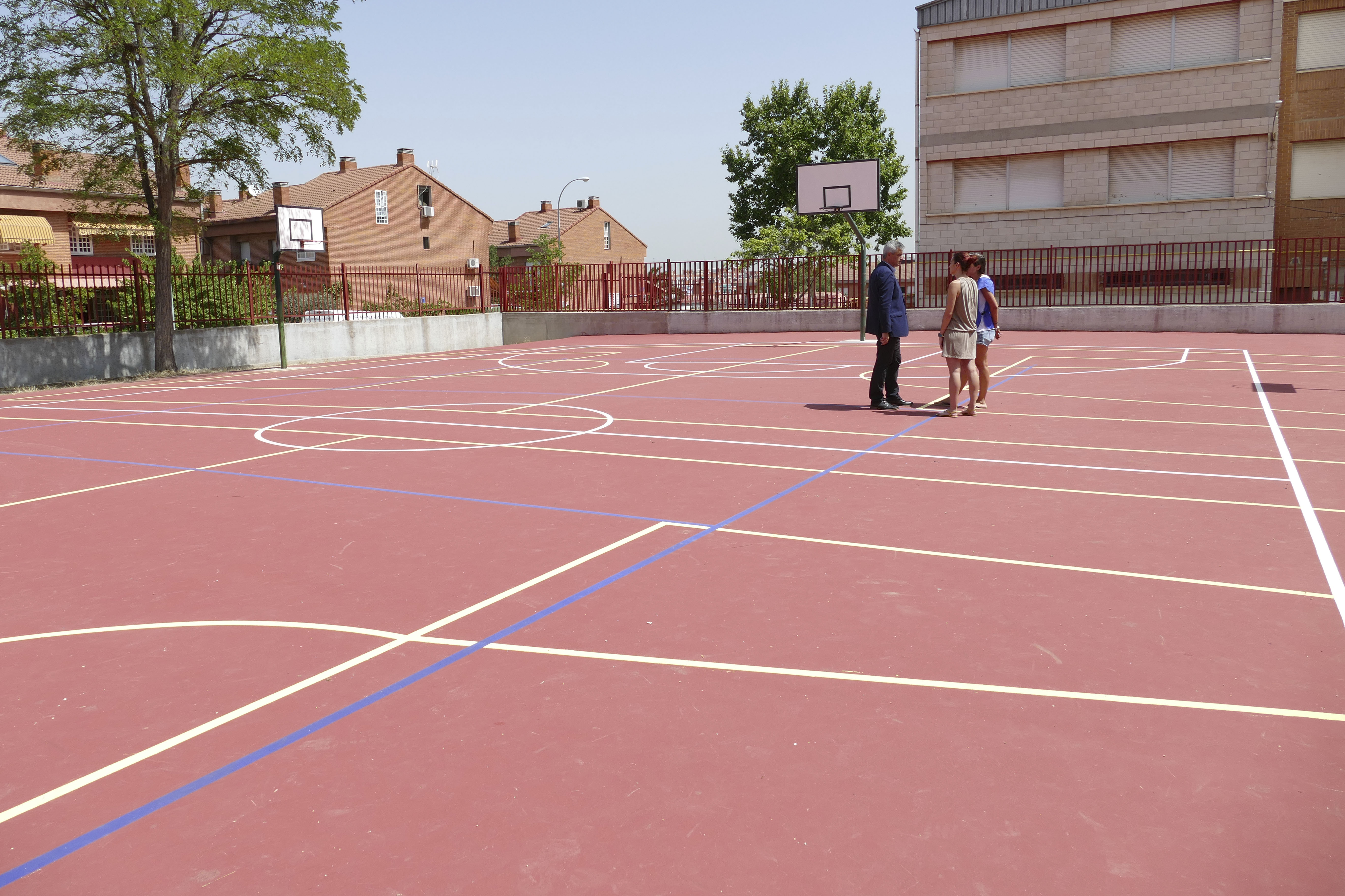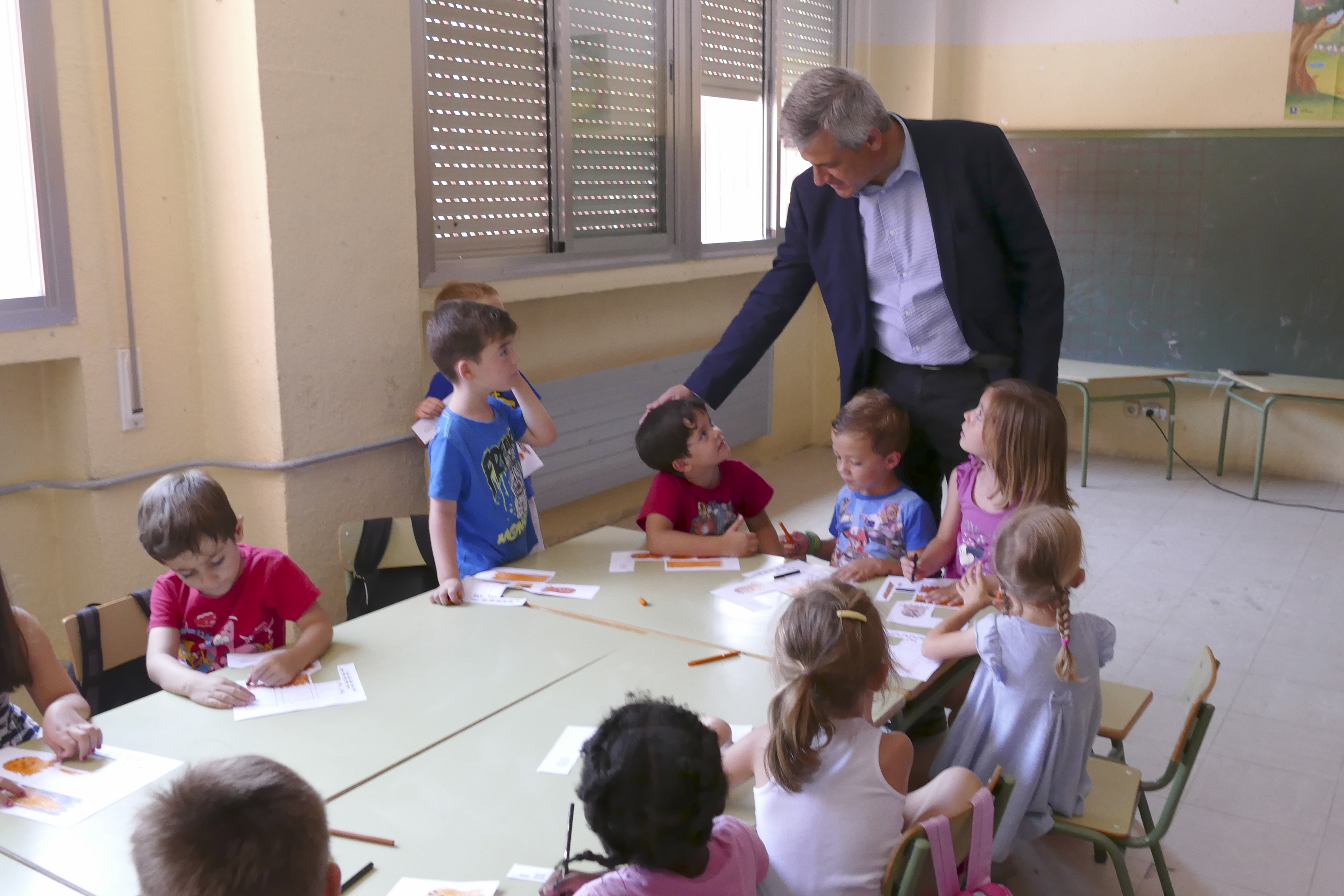 El alcalde de Móstoles, David Lucas, y la concejala de Educación, Isabel Cruceta, visitaron esta mañana las Colonias urbanas de verano que se están desarrollando durante el mes de julio en distintos colegios de la ciudad. Hoy han acudido, en concreto, al colegio público Antusana, donde también han podido observar los resultados del asfaltado de sus pistas exteriores y el proyecto de innovación ejecutado en los patios.