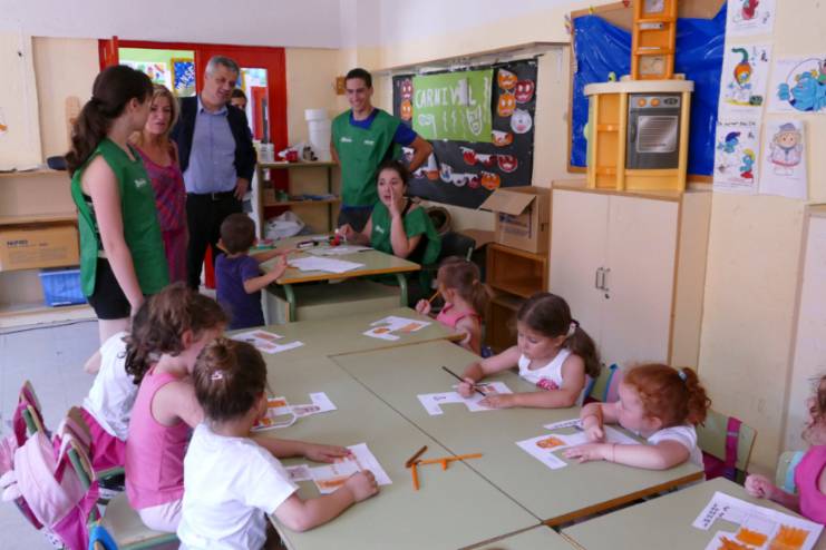 principalImagen en alta resolución. Este enlace se abrirá mediante lightbox, puede haber un cambio de contextoprincipalDurante su visita los representantes municipales se interesaron por las diversas actividades que los niños de cuatro a 12 años están llevando a cabo. Se trata de espacios donde la infancia ocupa, en horario de 7.30 a 16.00 horas, su tiempo de ocio estival divirtiéndose e interactuando con sus iguales.