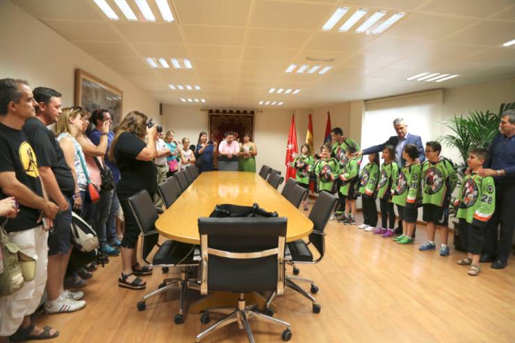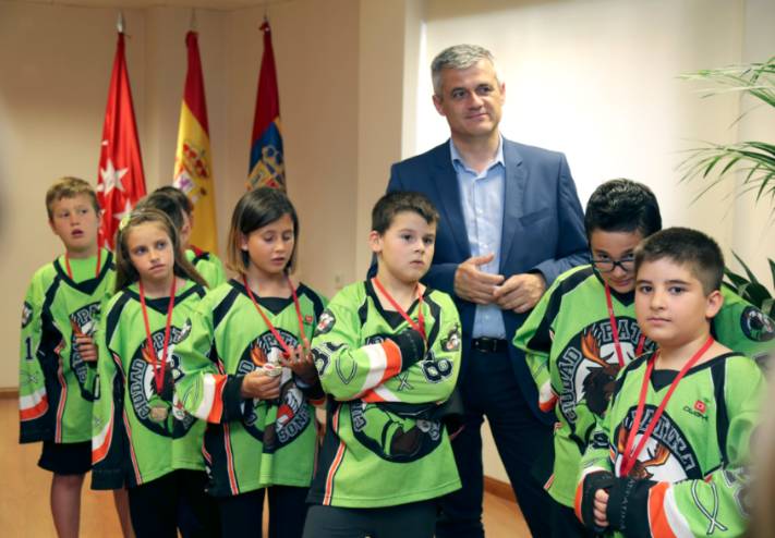 Hockey Ciudad Patino Renos 1Imagen en alta resolución. Este enlace se abrirá mediante lightbox, puede haber un cambio de contextoHockey Ciudad Patino Renos 1Jóvenes deportistas de las categorías Prebenjamines y Alevines del Club Hockey Ciudad Patina Renos, acompañados por su entrenador, Eugenio Argote. fueron recibidos, ayer lunes 20 de junio, por el alcalde de Móstoles, David Lucas. Durante el encuentro el primer edil felicitó a los jóvenes por los logros conseguidos durante la temporada 2015-2016, en la que el equipo de Prebenjamín se clasificó en el segundo lugar de la Comunidad de Madrid y el Alevín en el tercero.