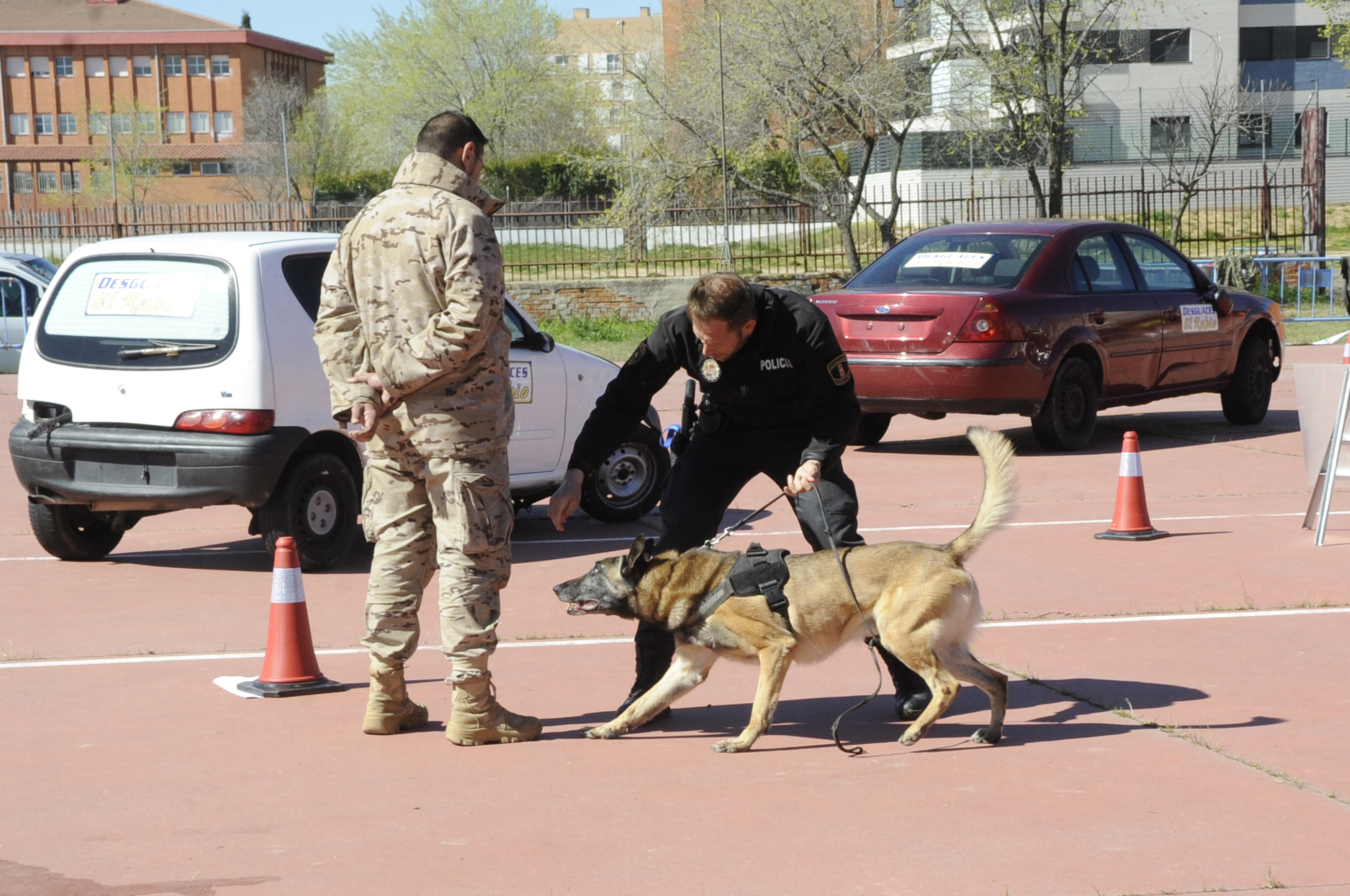 FOTO PRINCIPALImagen en alta resolución. Este enlace se abrirá mediante lightbox, puede haber un cambio de contextoFOTO PRINCIPALEl alcalde de Móstoles, David Lucas, acompañado del concejal de Presidencia, Seguridad Ciudadana y Movilidad, Roberto Sánchez, del jefe de la Policía Municipal, Juan Manuel Arribas y del Cabo Jefe de la Unidad Canina de Móstoles, José López Castellanos, ha visitado los campus teórico-prácticos de las `V Jornadas Policiales y Militares de Guías Caninos´, que se están desarrollando en el antiguo IES Juan Gris de la localidad.