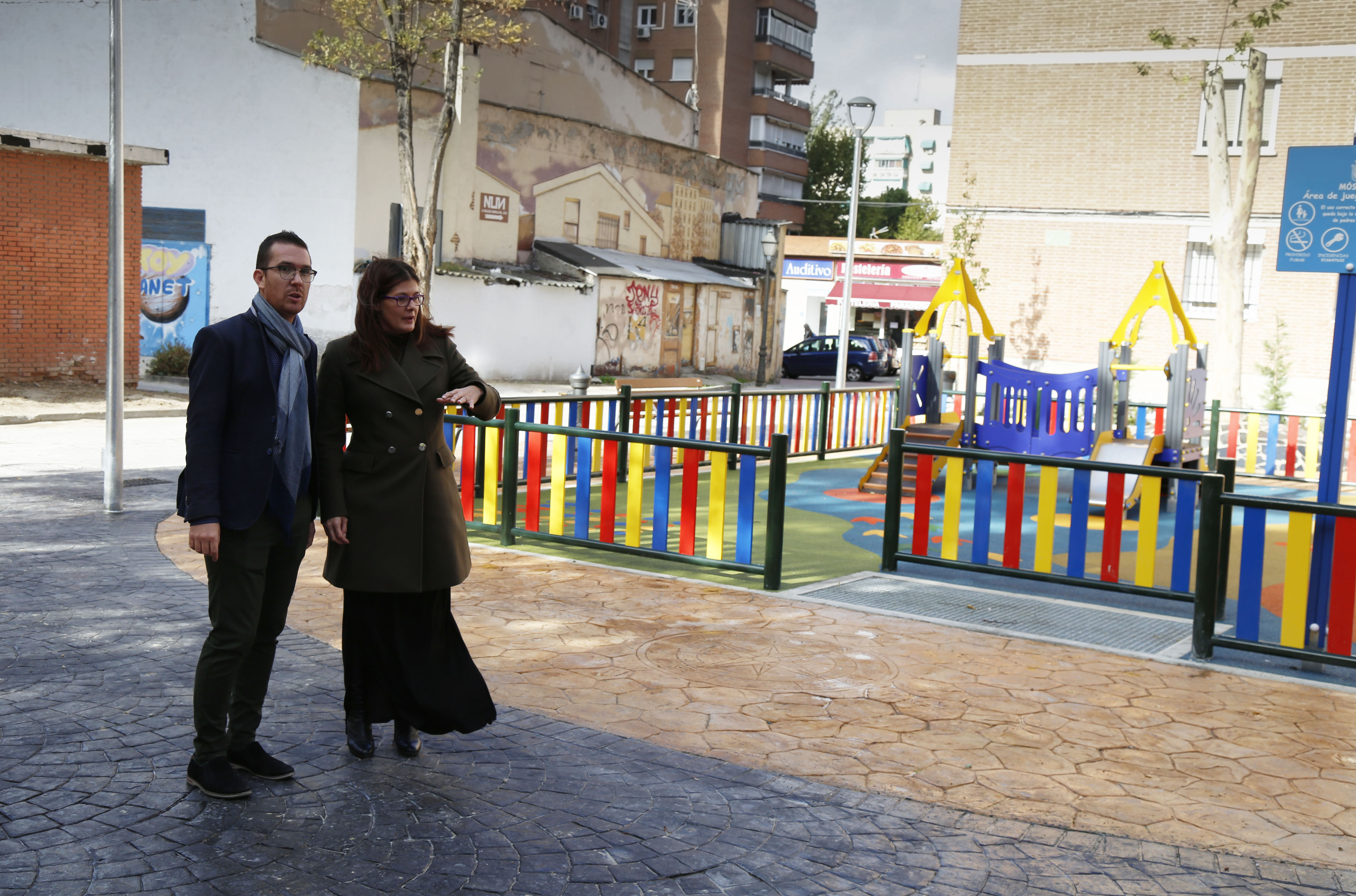 Imagen en alta resolución. Este enlace se abrirá mediante lightbox, puede haber un cambio de contextoLa alcaldesa, Noelia Posse, y el concejal de Mejora y Mantenimiento de los Espacios Públicos, David Muñoz, han visitado esta mañana las obras para la remodelación y acondicionamiento de la plaza situada entre la C/ Badajoz nº30 y Avenida Cerro Prieto nº 8.