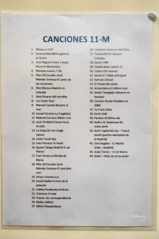 La exposición es el reflejo de un movimiento de solidaridad de la sociedad hacia las víctimas del terrorismo. Pinturas, esculturas, grabados, fotografías, música o poesía se entremezclan para recordarnos lo ocurrido, rindiendo homenaje y generando un espacio para la reflexión. Algunas obras provienen de pintores del barrio de Santa Eugenia, una de las estaciones que sufrió los atentados.