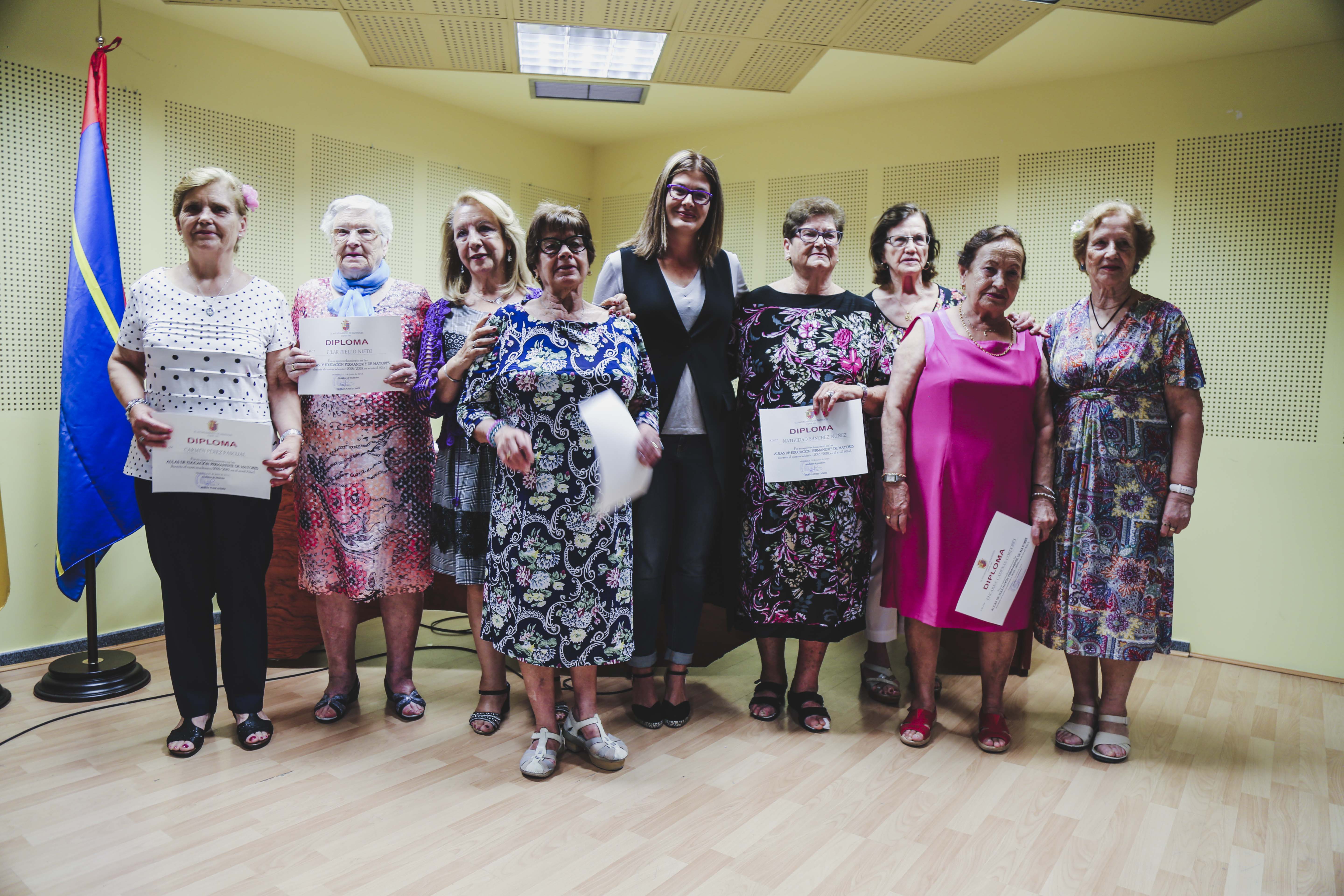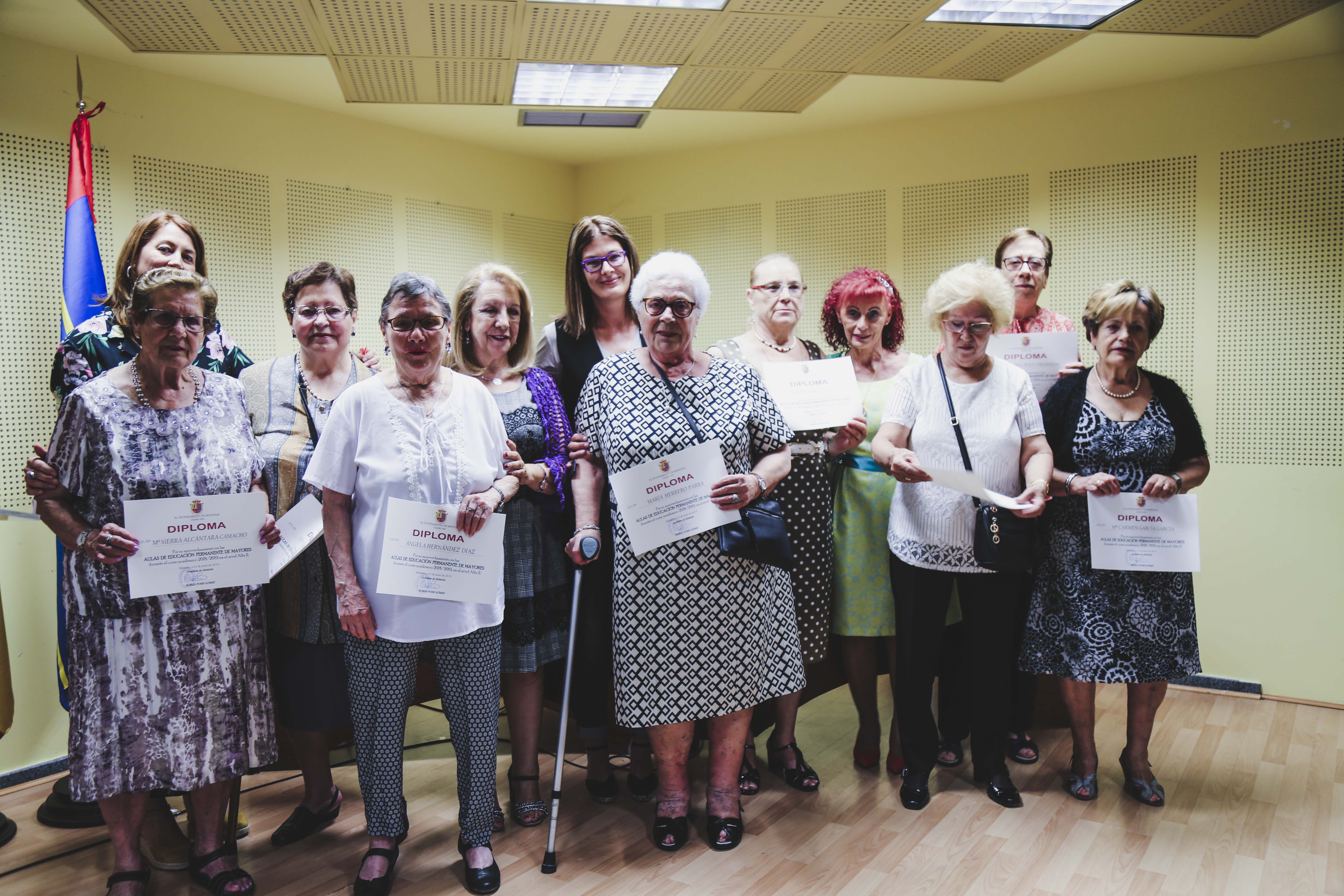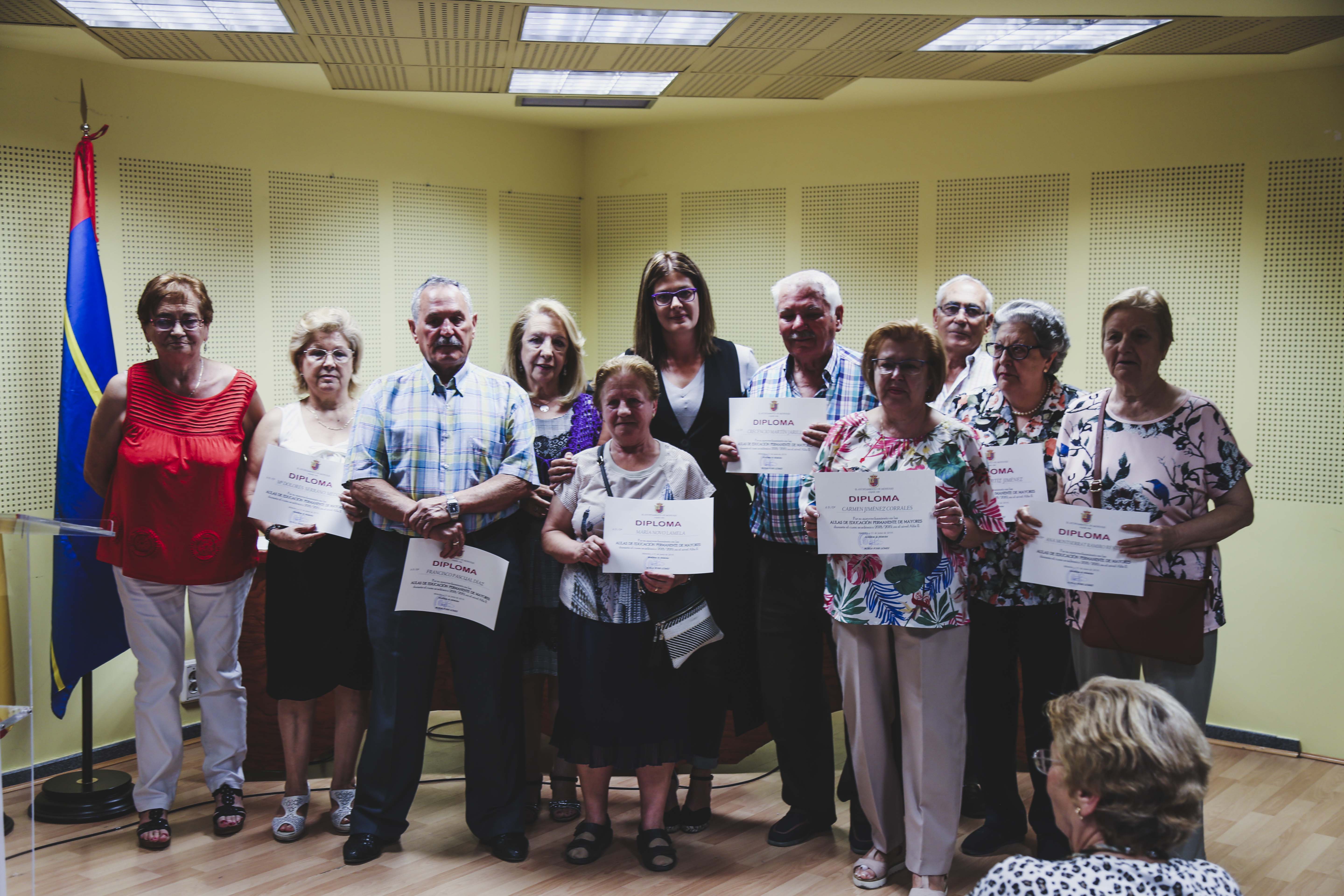 Durante el acto, la Alcaldesa y la Concejala han hecho entrega de los diplomas que acreditan el esfuerzo y la constancia que durante todo el año han realizado las y los matriculados en las Aulas de Formación Permanente de Mayores. Además, se ha reconocido también, por su labor desinteresada, a las profesoras y profesores, así como a los colaboradores de los diferentes talleres que se han desarrollado durante los meses de octubre de 2018 a junio de 2019.