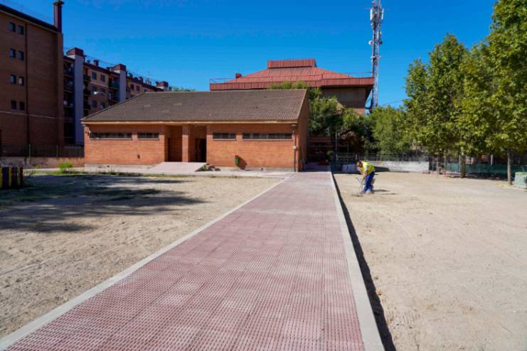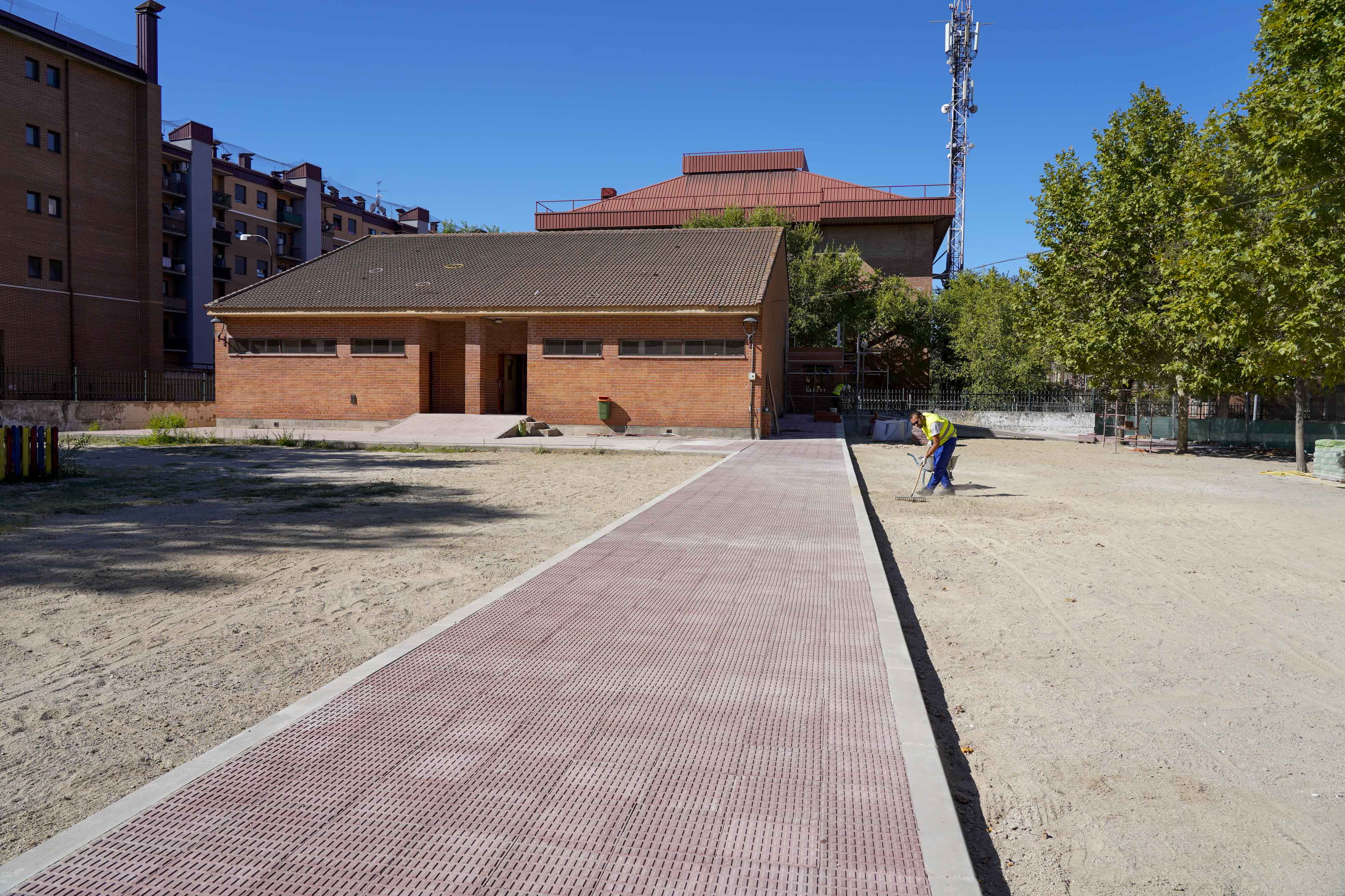 En el CEIP Vicente Aleixandre, se están llevando a cabo obras en el exterior del edificio, con el objeto de acondicionar la zona de la salida de emergencia del gimnasio, así como en la acera que transcurre hasta el edificio principal del centro.