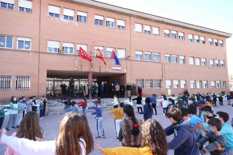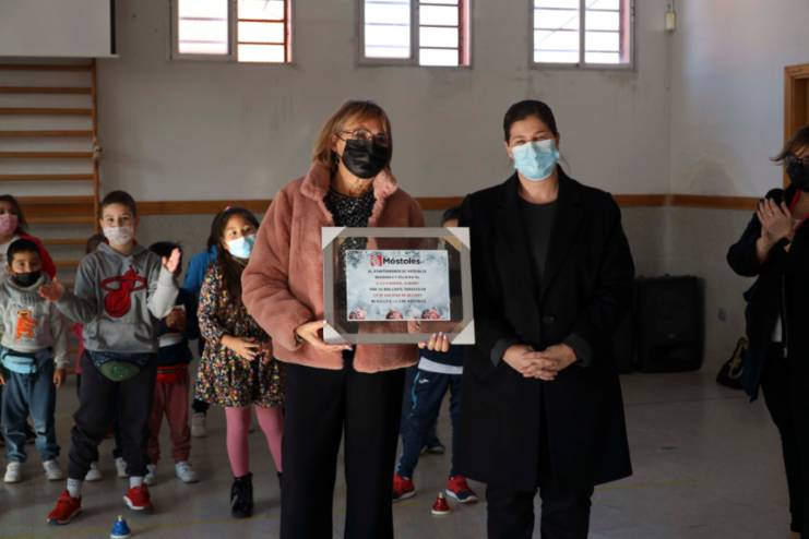 La Alcaldesa, Noelia Posse, acompañada de la Concejala de Presidencia y Desarrollo Urbano, Marisa Ruiz, el Delegado Diocesano del Obispado de Getafe, Javier Segura, el Vicario de Apostolado Seglar del Obispado de Getafe, Jaime Bertodano, María Ángeles Sanchís, organizadora del certamen de muestras, y la coordinadora de las mismas, África Madrid, ha visitado hoy el centro educativo y ha hecho entrega al CEIP Rafael Alberti de una placa en reconocimiento.
