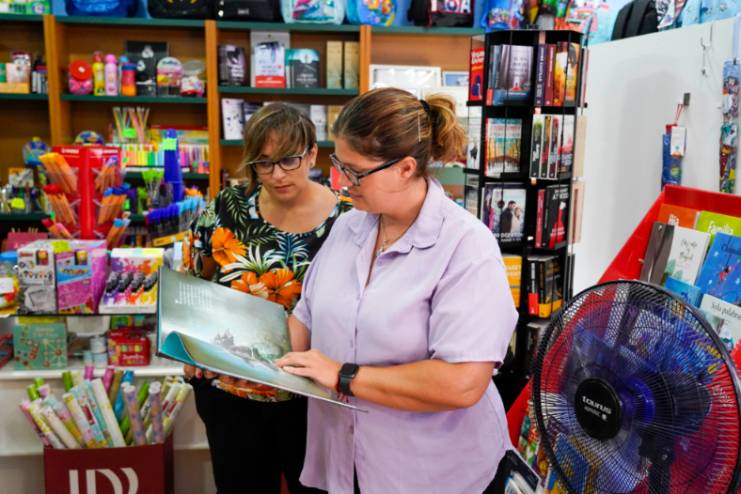 Dentro de las visitas que habitualmente realiza para ofrecer su apoyo a los pequeños comercios del municipio, la Alcaldesa de Móstoles, Noelia Posse, acompañada por la Concejala de Presidencia y Desarrollo Urbano, Marisa Ruiz, ha visitado esta mañana la librería y papelería "El Baúl de Sueños", ubicada en la calle Río Llobregat, 7.