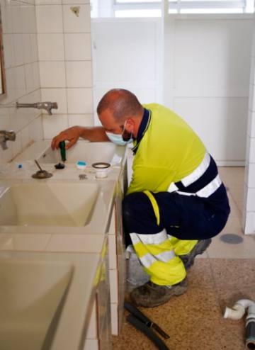 En el CEIP Celso Emilio Ferreiro se está llevando a cabo una inspección general de toda la fontanería del colegio para comprobar su buen funcionamiento. Los trabajos incluyen revisiones de la grifería en todas las dependencias del colegio, aseos, cocinas, laboratorios, patios, etc.