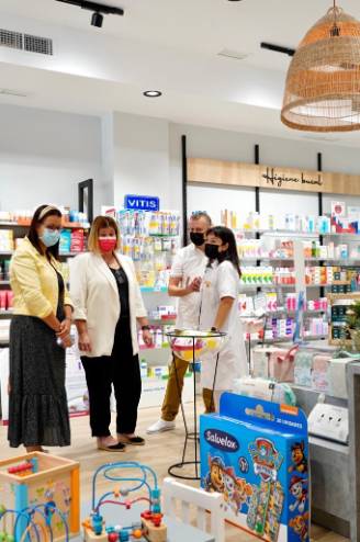 El PAU-4 ya cuenta con la primera farmacia que se abre en este barrio. El establecimiento está a cargo de la Licenciada Mónica Romero Gutiérrez, que hoy ha recibido la visita de la Alcaldesa de Móstoles, Noelia Posse, acompañada por la Concejala de Empleo y Nuevas Tecnologías, Rebeca Prieto.