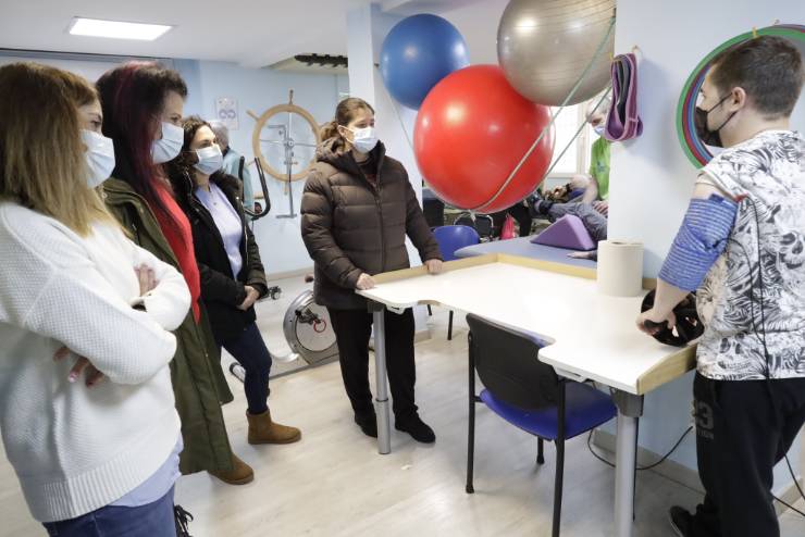 Visita ADISFIM (1)pImagen en alta resolución. Este enlace se abrirá mediante lightbox, puede haber un cambio de contextoVisita ADISFIM (1)pLa Alcaldesa, Noelia Posse, ha visitado hoy los talleres de fisioterapia y terapia ocupacional que ofrece en el municipio la Asociación de Discapacitados Físicos de Móstoles (ADISFIM) para el tratamiento y rehabilitación de personas con diversidad funcional.
