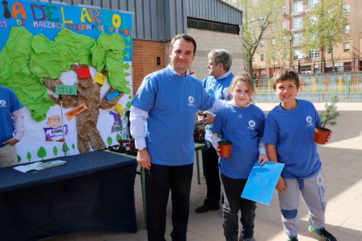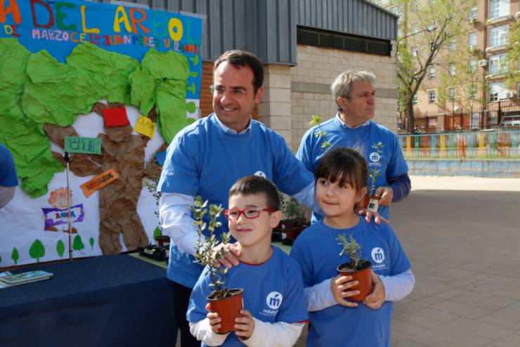 El Alcalde de Móstoles, Daniel Ortiz, ha participado en el Día Mundial del Árbol, celebrado este año en el Colegio Público Juan Pérez Villamil, con la participación de cerca de 600 niños de diversos cursos.