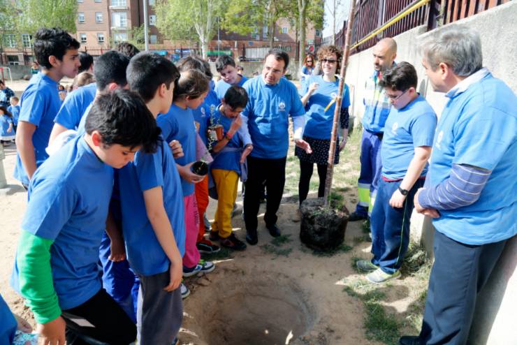 Acompañado de la Concejal de Educación, Cultura y Promoción Turística, Mirina Cortés, la Concejal de Parques y Jardines, Elena López, el Concejal de Infraestructuras, David Sánchez del Rey, la Concejal del Distrito Sureste, Natividad Perales, y del Director del centro, José Luis Rodríguez, el regidor ha ayudado a los alumnos a llevar a cabo la plantación de árboles de distintas especies, como Pinus nigra, Q. Ilex, Q. Suber, Q. Faginea, Sorbus Aria, Fraxinus , Angustifolia y Lavanda stoeches.