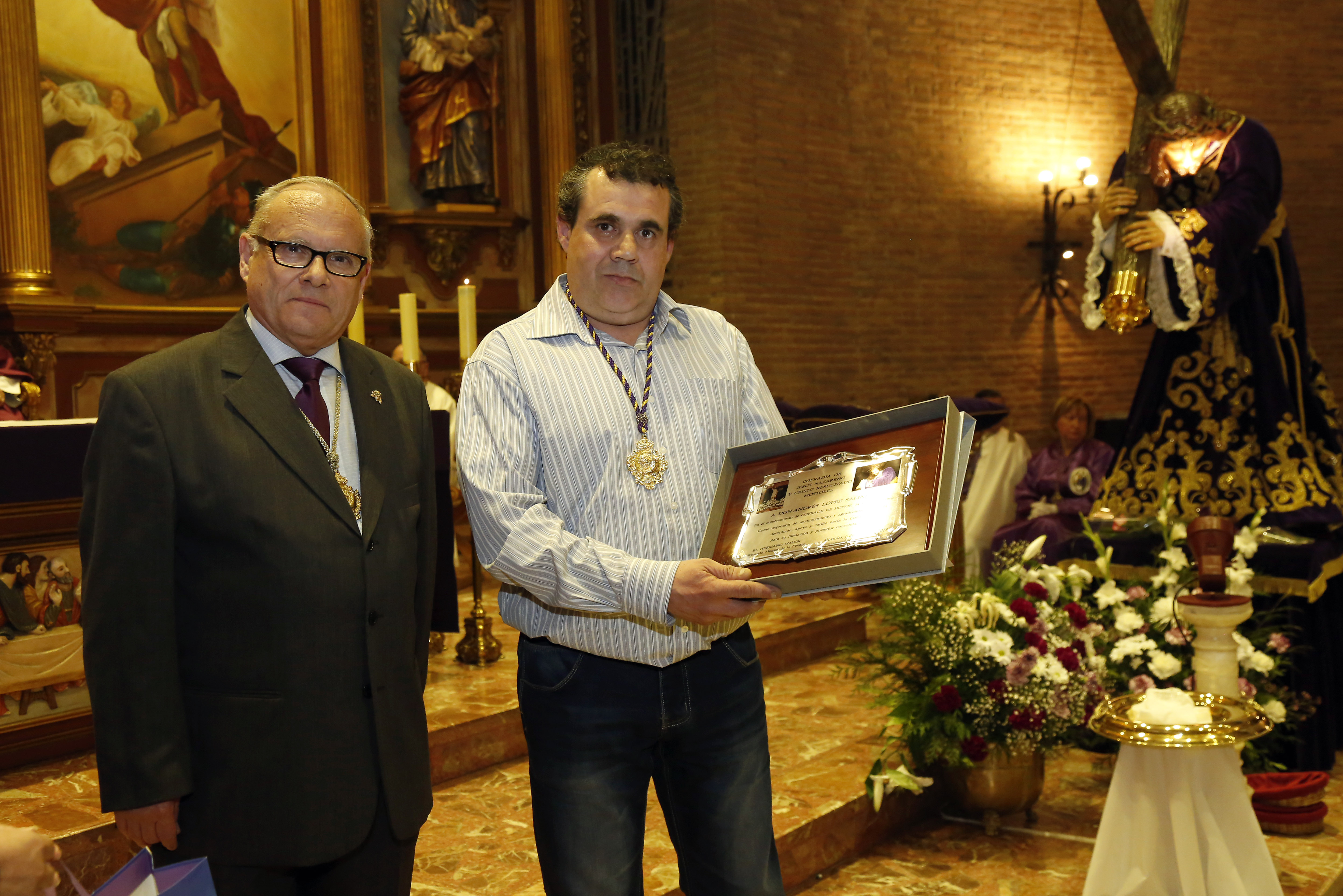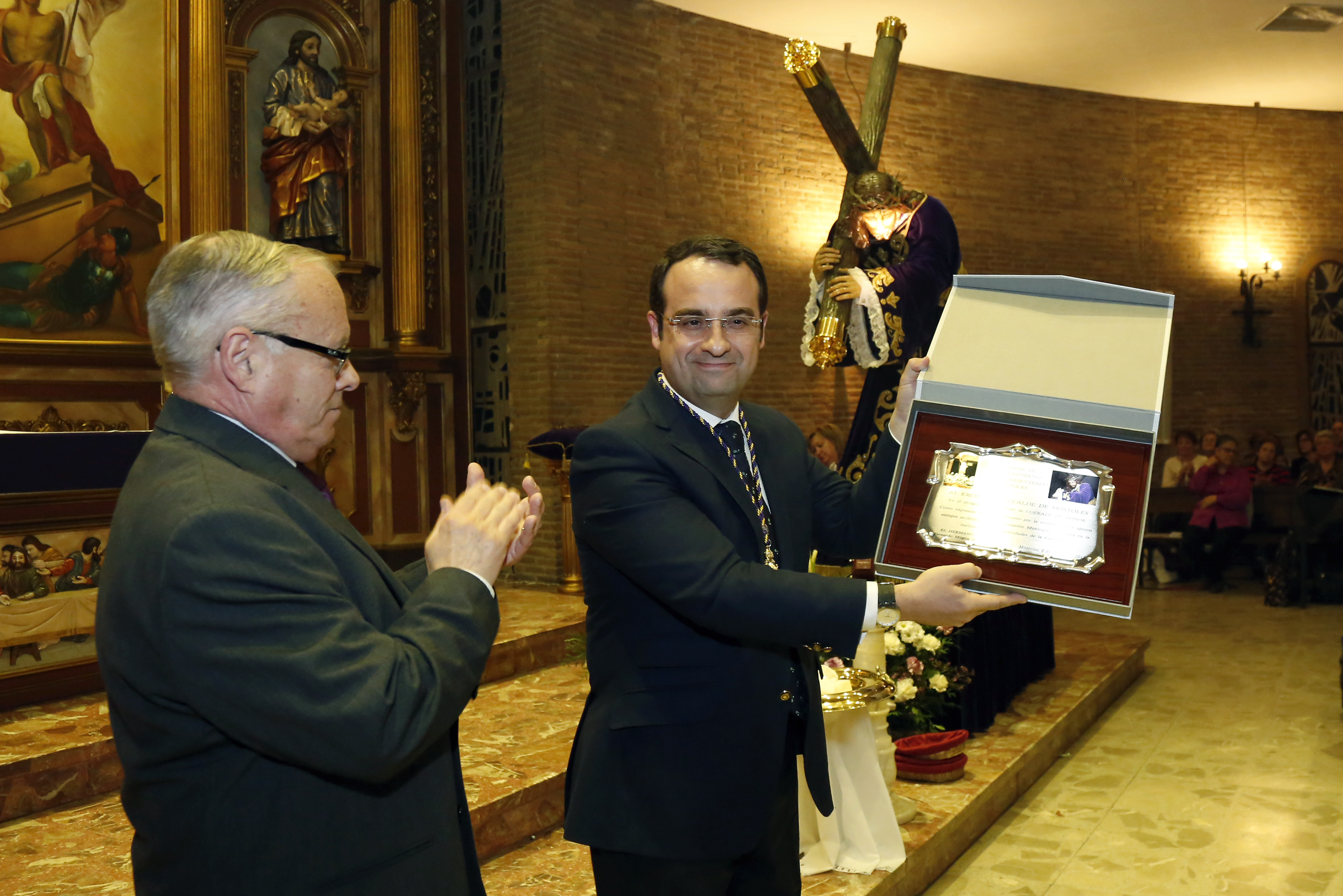 Tras finalizar la homilía de la misa solemne ha tenido lugar la imposición de la medalla de Cofrade de Honor al Alcalde, Daniel Ortiz, que también ha recibido de manos del Presidente de la Cofradía, Fernando Múgica, una placa conmemorativa.