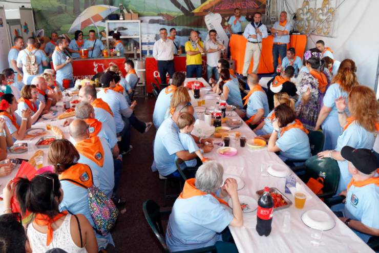 Los socios de esta peña, 230 peñeros, no han faltado a esta cita de cumpleaños en su carpa, así como numerosos invitados que han querido acompañarles para degustar un copioso cocido preparado al estilo tradicional porque es una receta que gusta mucho en la peña, según confiesa su presidente, Rafael González.