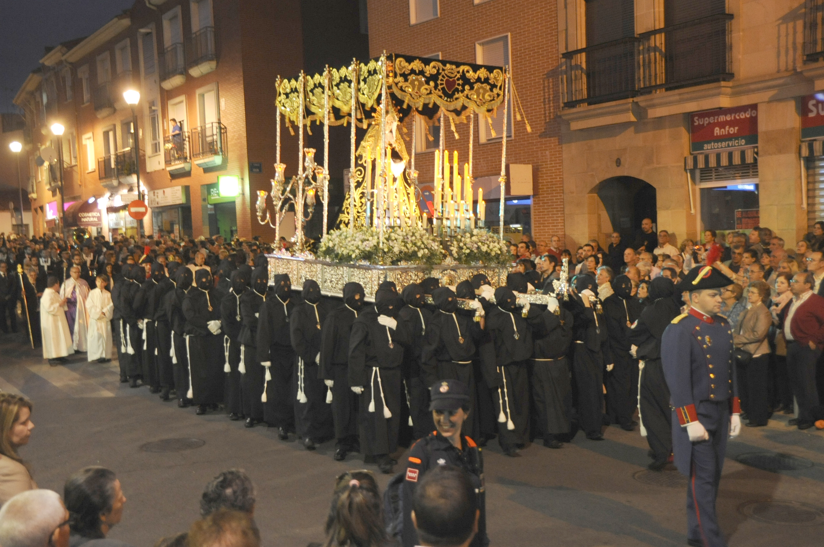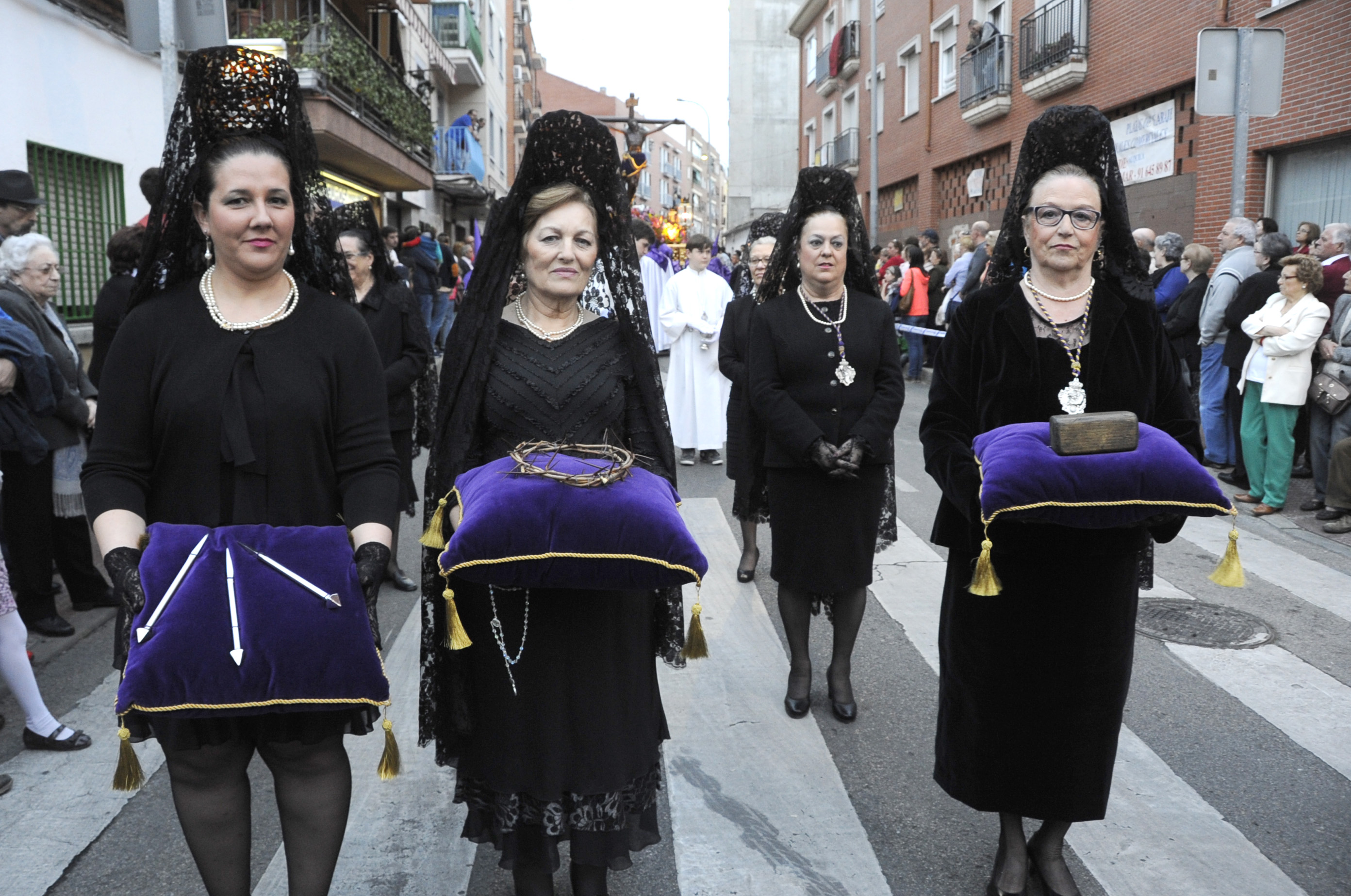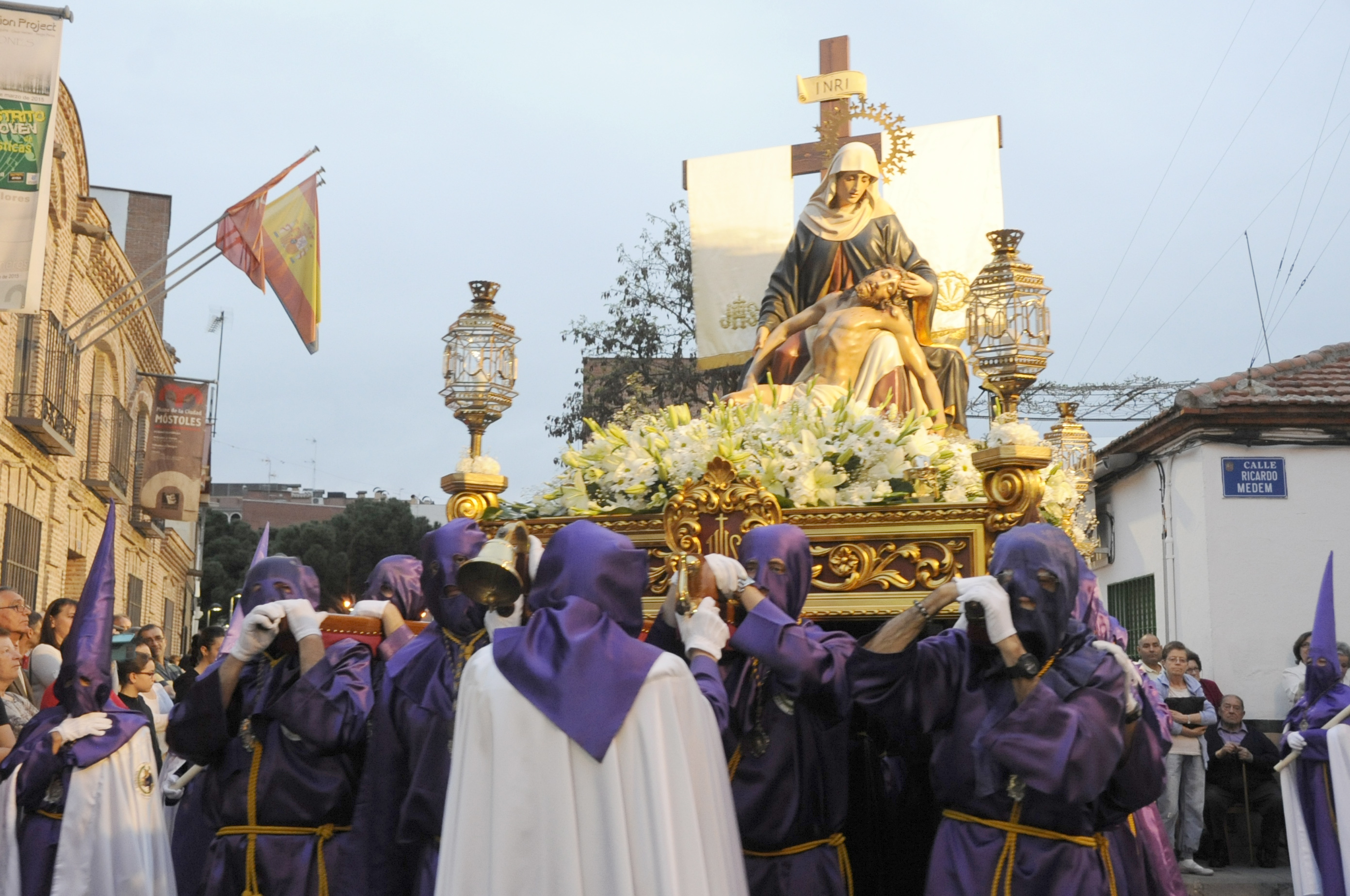 Esta procesión saca a las calles del centro de Móstoles cuatro pasos: el Cristo Crucificado, La Piedad, El Sepulcro y la Virgen de la Soledad, pertenecientes a la Cofradía Jesús Nazareno y Cristo Resucitado, la Parroquia de Nuestra Señora de la Asunción y la Hermandad Nuestra Señora de la Soledad, la más antigua de la ciudad.