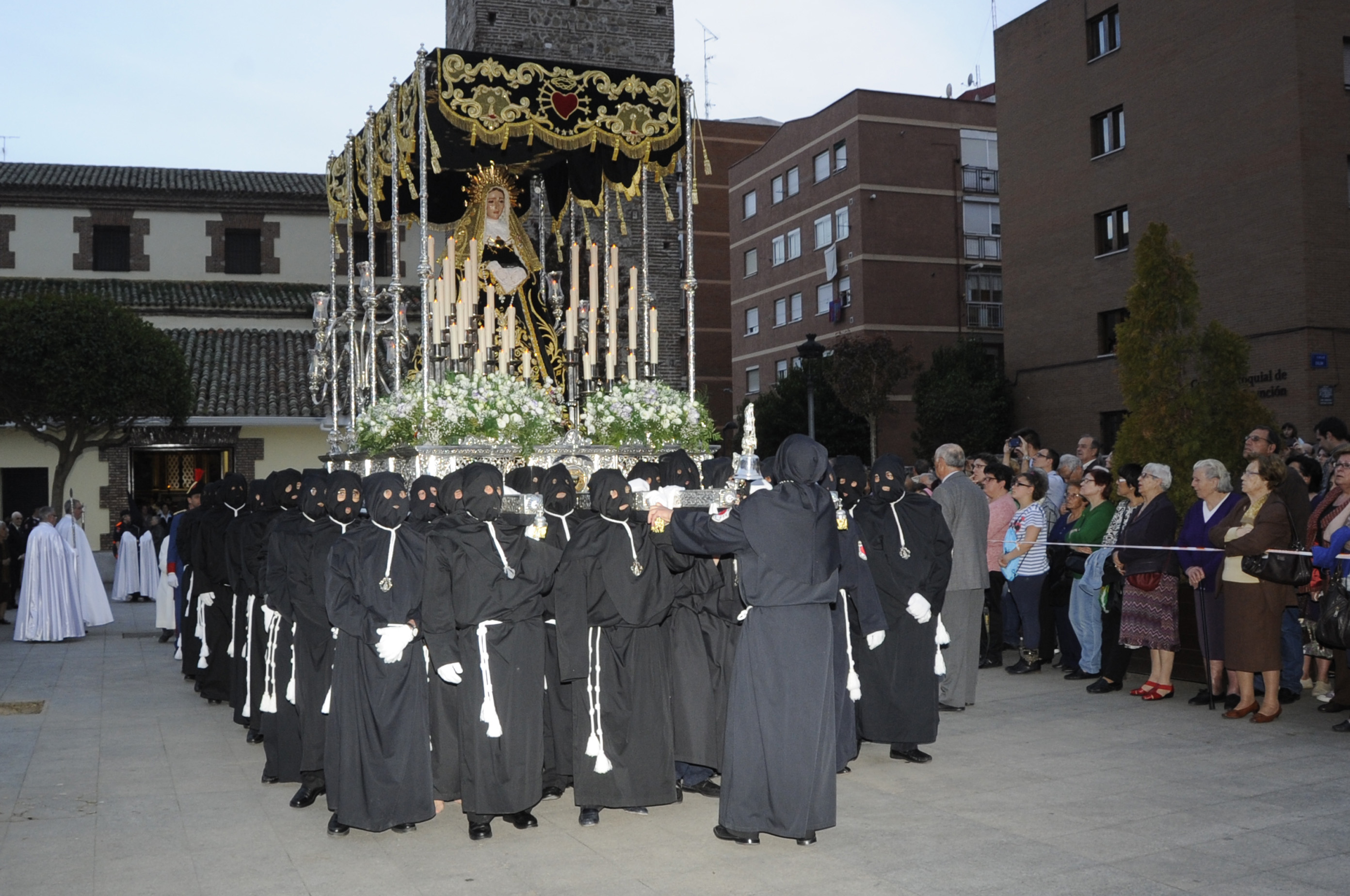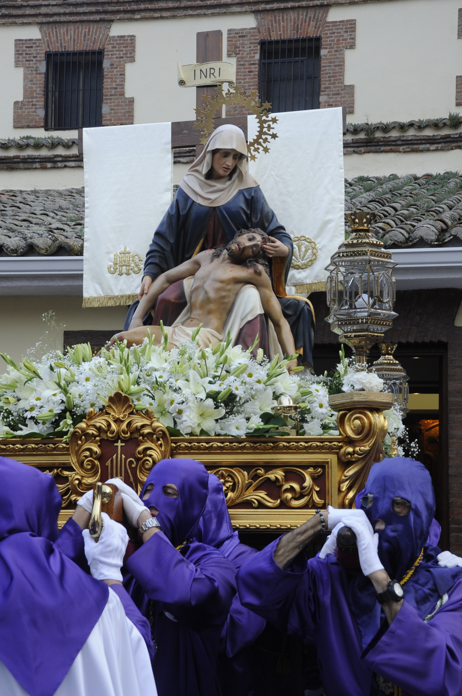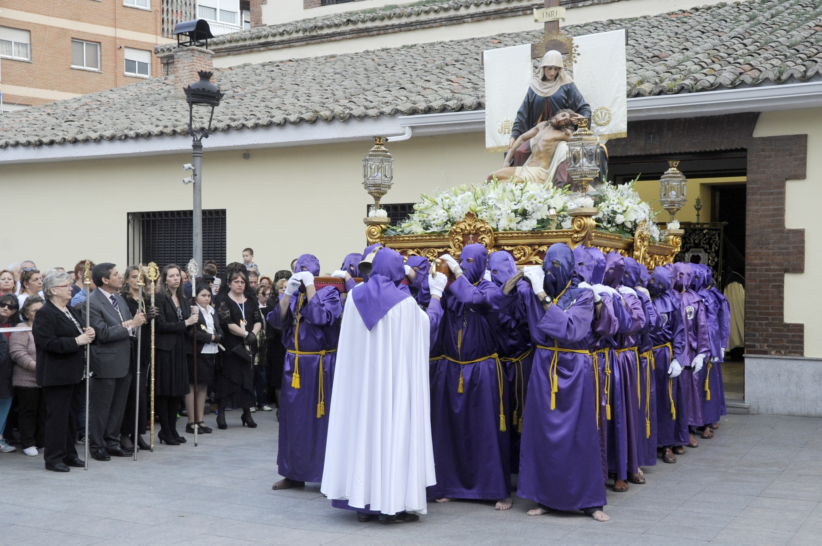 Esta procesión saca a las calles del centro de Móstoles cuatro pasos: el Cristo Crucificado, La Piedad, El Sepulcro y la Virgen de la Soledad, pertenecientes a la Cofradía Jesús Nazareno y Cristo Resucitado, la Parroquia de Nuestra Señora de la Asunción y la Hermandad Nuestra Señora de la Soledad, la más antigua de la ciudad.
