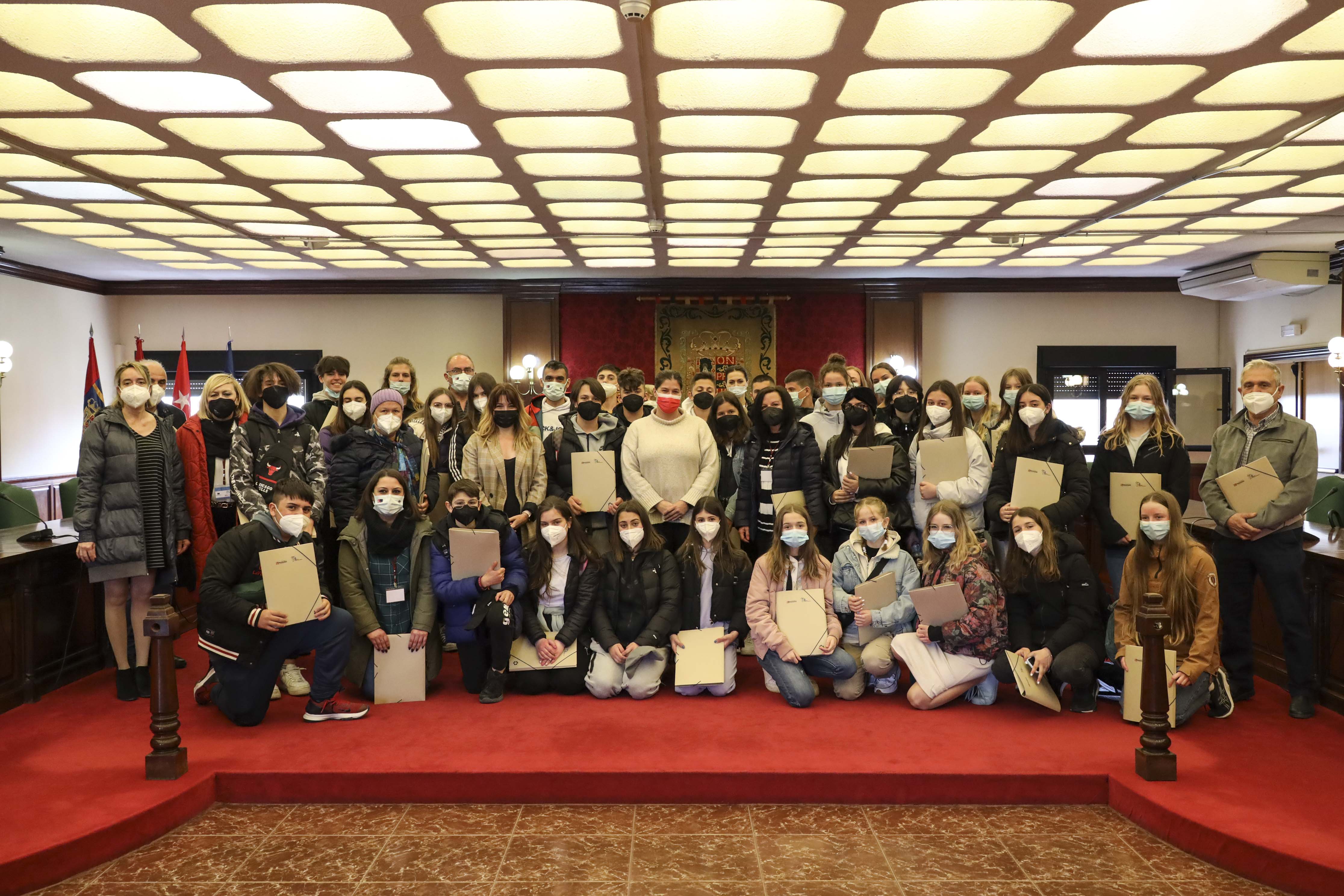 Participantes en el programa ERASMUS No Place like school (9)Participantes en el programa ERASMUS No Place like school (9)Un grupo de 34 alumnos de centros educativos de Polonia, Grecia, Italia, Noruega y Turquía, junto con sus profesores, han visitado esta mañana el Ayuntamiento de Móstoles donde han sido recibidos por la Alcaldesa, Noelia Posse, y la Concejala de Educación y Juventud, Nati Gómez, con las que han mantenido un encuentro informal y conversado sobre diferentes temas relacionados con Móstoles y con España.