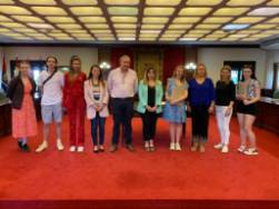 Alumnos Galeses en Escuela Simone OrtegaAlumnos Galeses en Escuela Simone OrtegaUn grupo de estudiantes y profesores de Hostelería y Turismo de Gales (Reino Unido) han visitado el Ayuntamiento de Móstoles en el marco de un intercambio con la Escuela de Hostelería y Turismo Simone Ortega dentro del programa de la Unión Europea Erasmus+. Les ha recibido la Concejala de Podemos y responsable del área de Educación y Juventud, Nati Gómez.