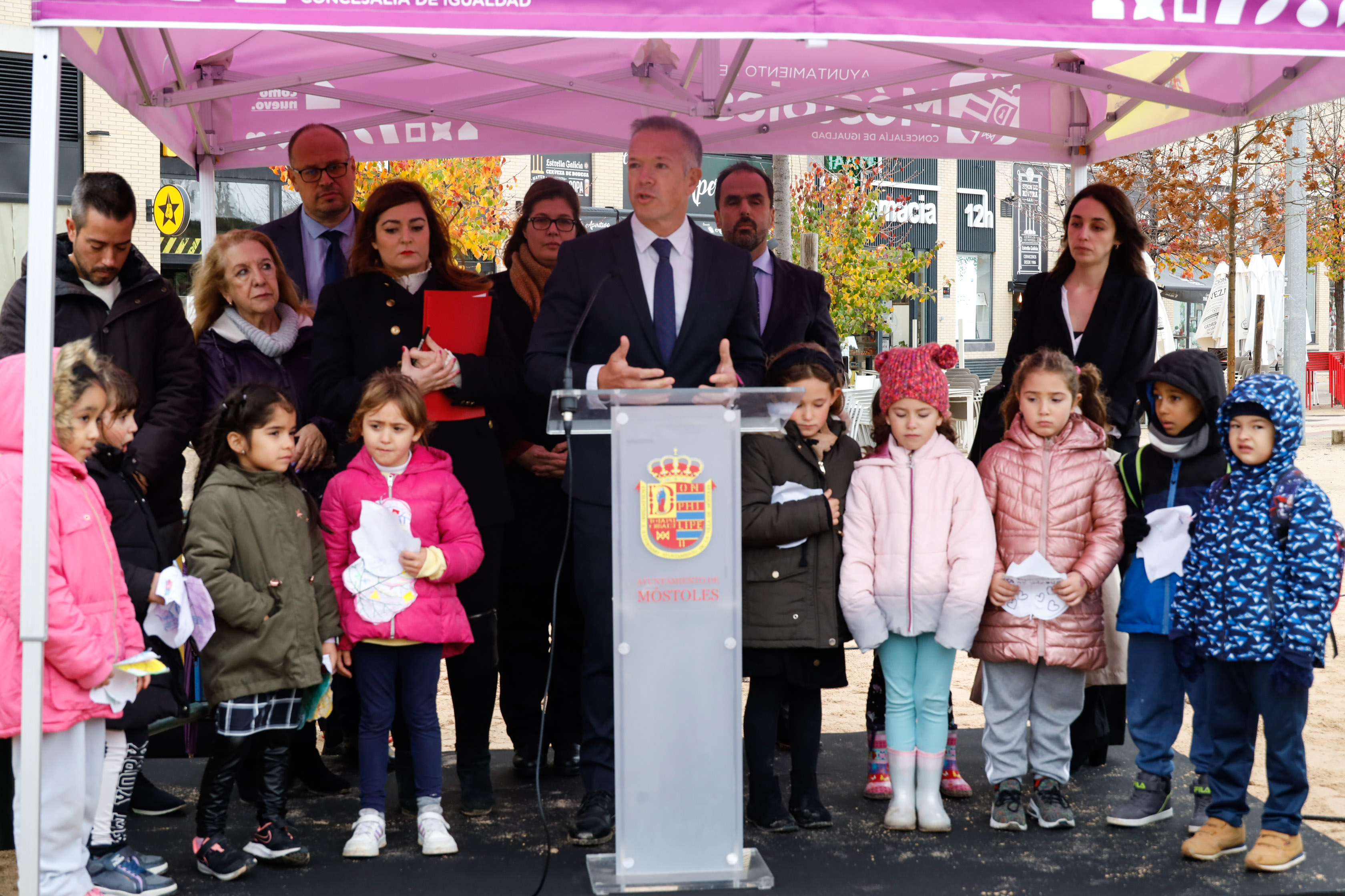En un emotivo acto celebrado en la Plaza del Sol, Móstoles ha rendido hoy un homenaje a Irina y su hija Mariya, dos vecinas de la ciudad asesinadas el pasado 6 de noviembre, víctimas de violencia de género.