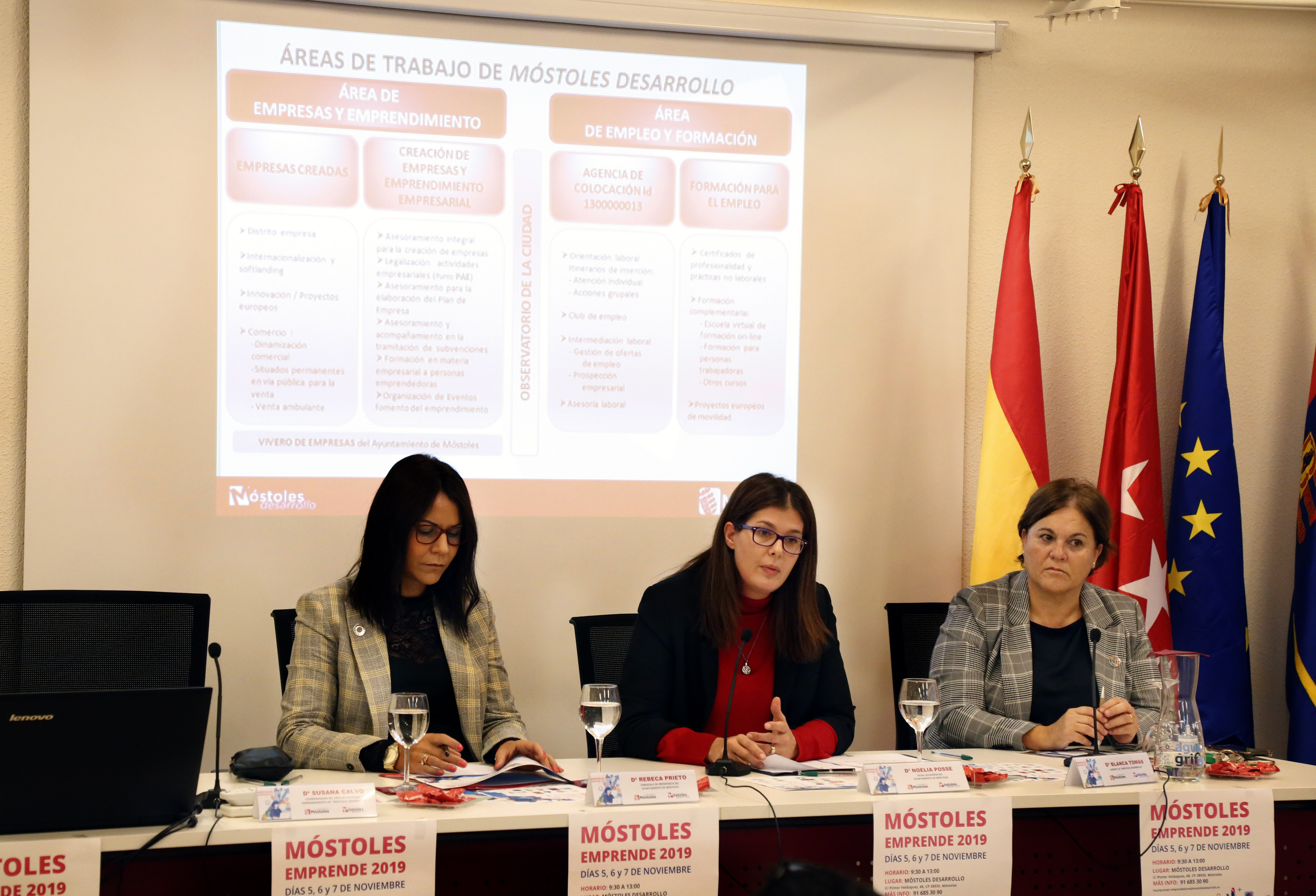 Inauguracion mostoles emprende 1Imagen en alta resolución. Este enlace se abrirá mediante lightbox, puede haber un cambio de contextoInauguracion mostoles emprende 1La cuarta edición de `Móstoles Emprende´, que organiza hasta el próximo jueves el Ayuntamiento de Móstoles, a través de la Concejalía de Presidencia en el Centro de Empleo y Promoción Económica Tierno Galván, ha dado comienzo esta mañana con la presencia de la Alcaldesa de Móstoles, Noelia Posse, que ha estado acompañada por la concejala de Presidencia, Rebeca Prieto y de otros concejales de la Corporación.