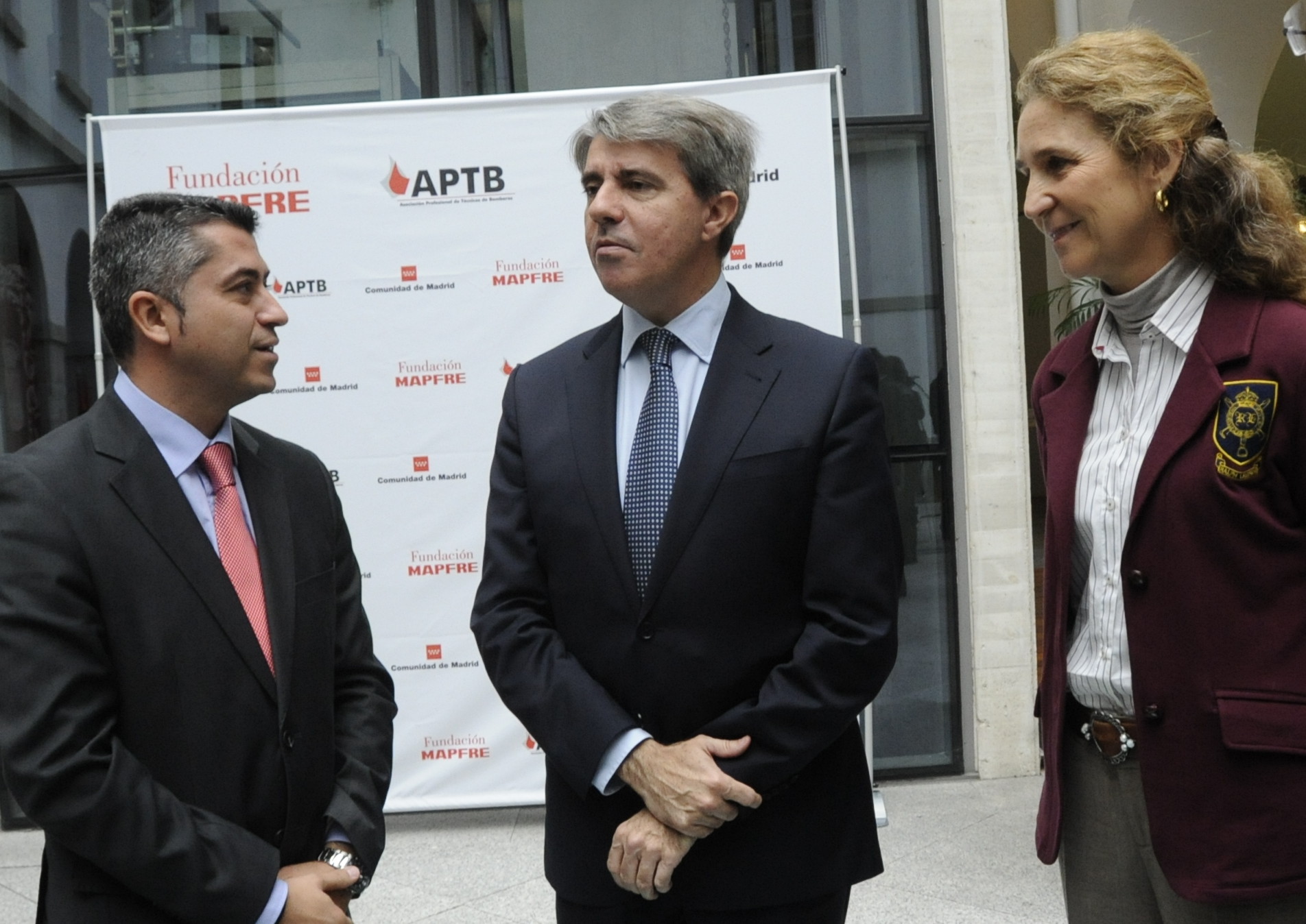 La infanta, doña Elena de Borbón, el consejero de Presidencia, Justicia y Portavoz del Gobierno de la Comunidad de Madrid, Ángel Garrido, y el director del Área de Prevención y Seguridad Vial de la Fundación, Jesús Monclús, han presentado esta mañana la X Semana de la Prevención de Incendios, organizada por la Fundación Mapfre en colaboración con la Asociación Profesional de Técnicos de Bomberos.