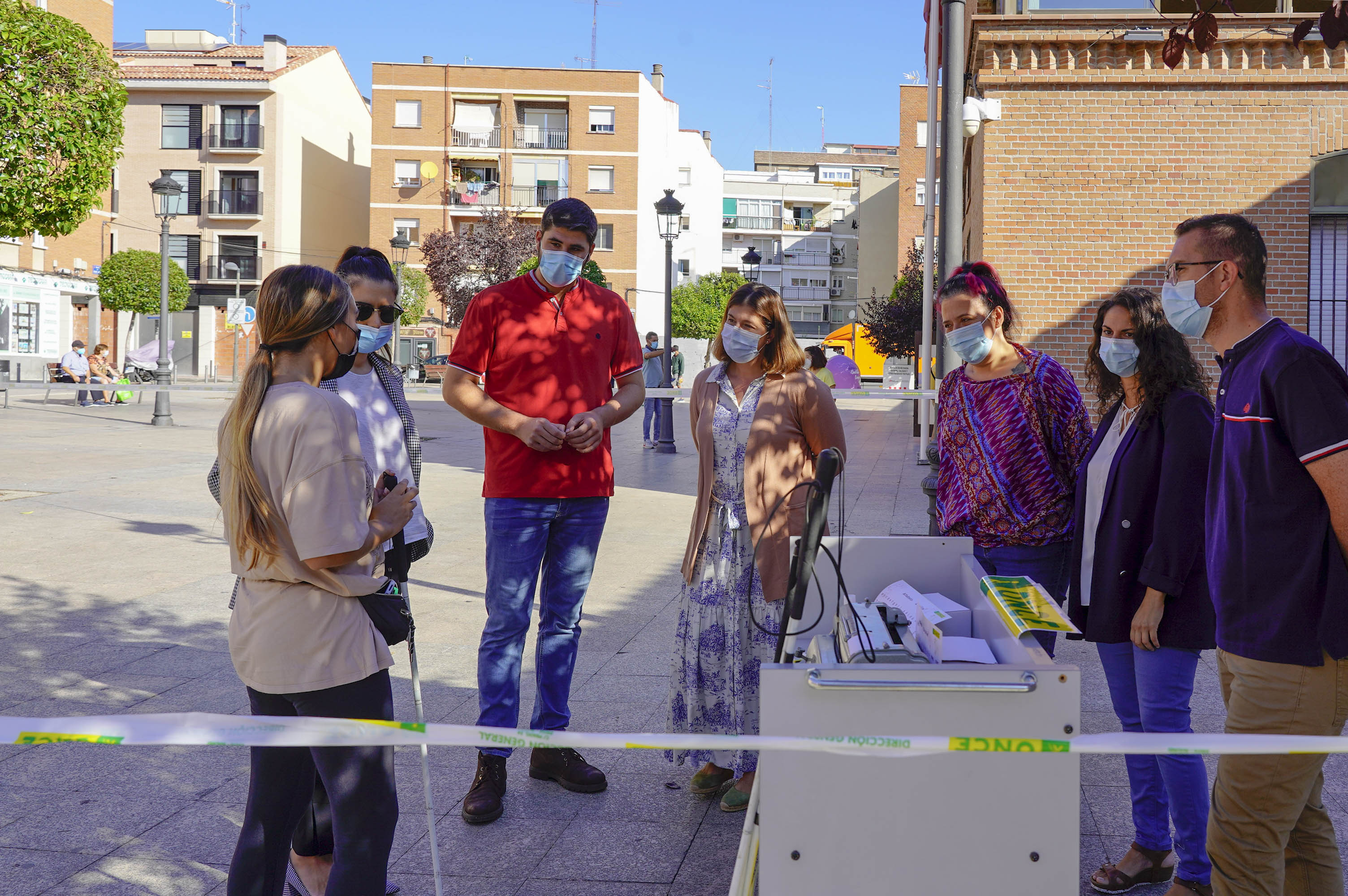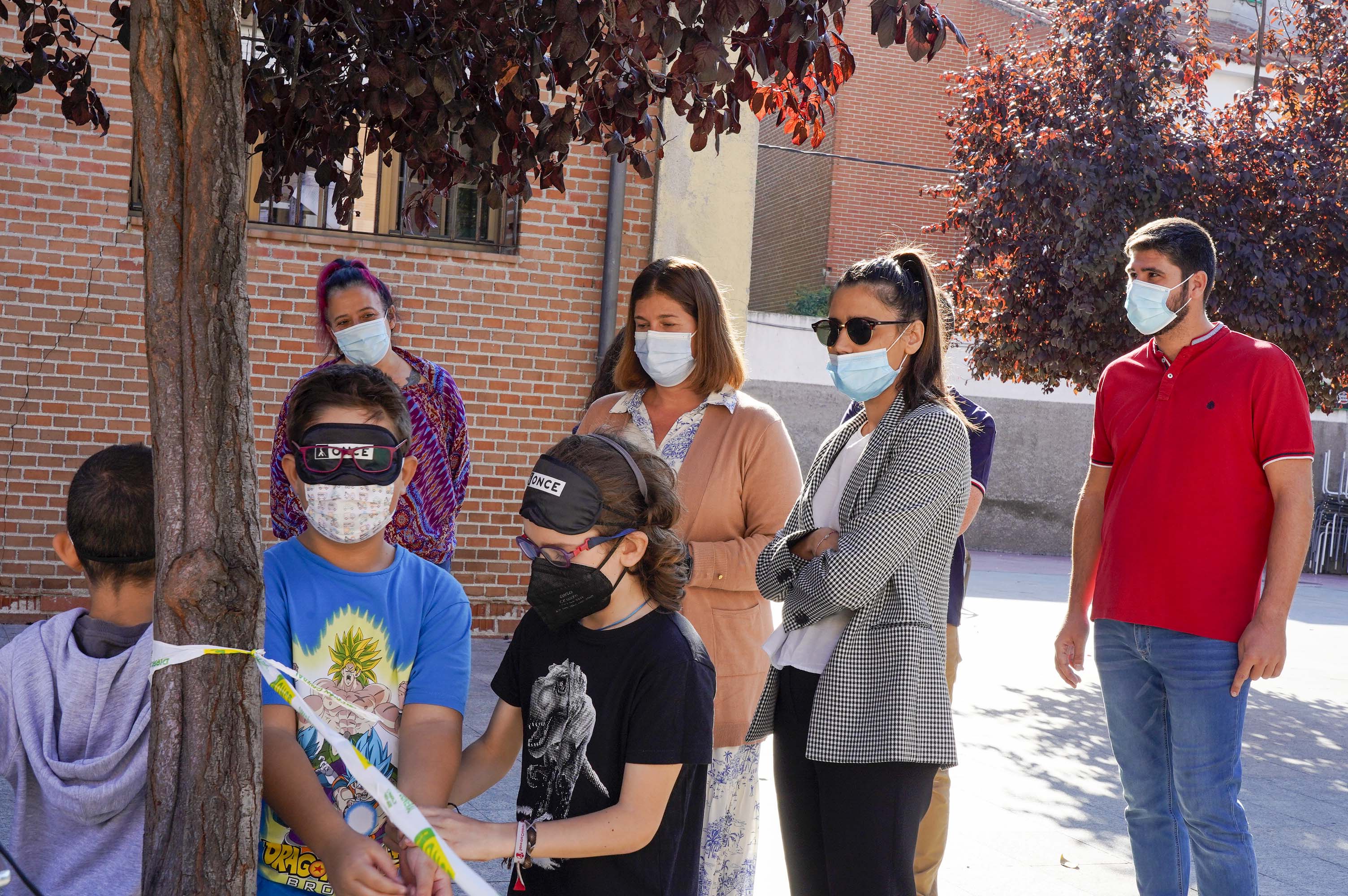 La jornada se ha completado con la realización de la actividad organizada por la ONCE "Muévete con la ONCE" que ha tenido lugar en la Plaza de Ernesto Peces, donde miembros de la organización han explicado y han tratado de acercar a los escolares mostoleños el modo en el que se mueven por la ciudad las personas con visión limitada o invidentes. Una experiencia que quiere hacerles ver que las ciudades no están adaptadas a las personas con discapacidad visual; y el desconocimiento que los ciudadanos sin problemas de movilidad tienen de los obstáculos que se encuentran los invidentes cuando se desplazan por las zonas urbanas.