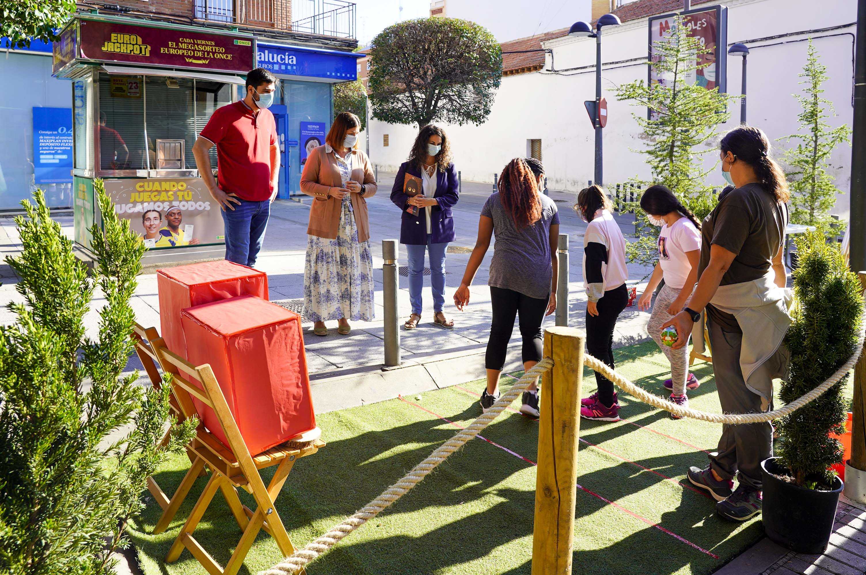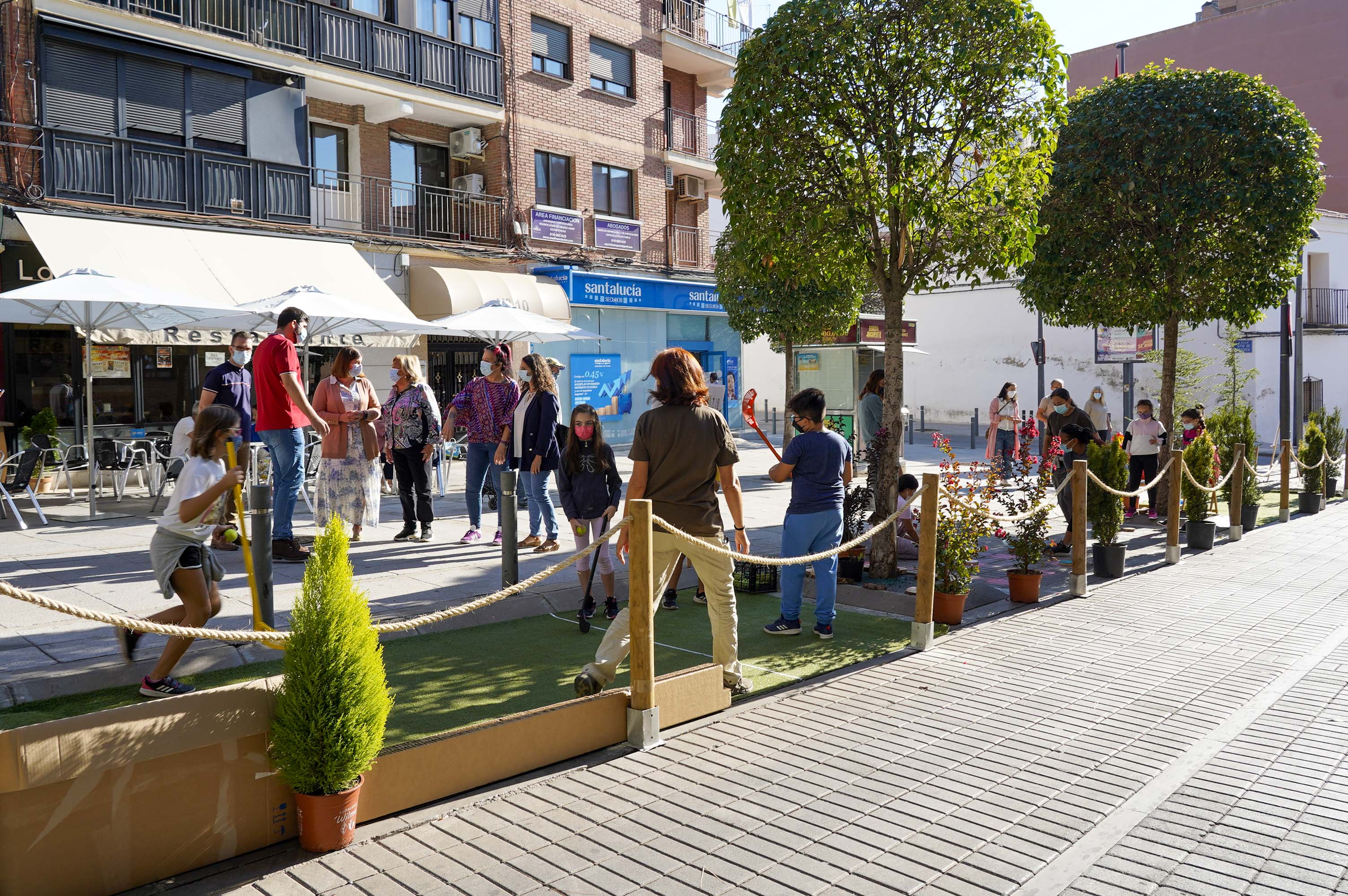 En tres plazas de aparcamiento de la calle Antonio Hernández, frente al Ayuntamiento, alumnos y alumnas del CEIP Gabriel Celaya han participado en el evento Park(ing) Day. Con el montaje de un jardín efímero dotado también con un espacio para diversos juegos, han dado una nueva utilidad a este espacio destinado al aparcamiento de vehículos. Esta iniciativa reivindicativa, que surgió en San Francisco en 2005, aboga por la transformación temporal de espacios destinados a vehículos en parques, jardines o en zonas más amables dentro de las ciudades.