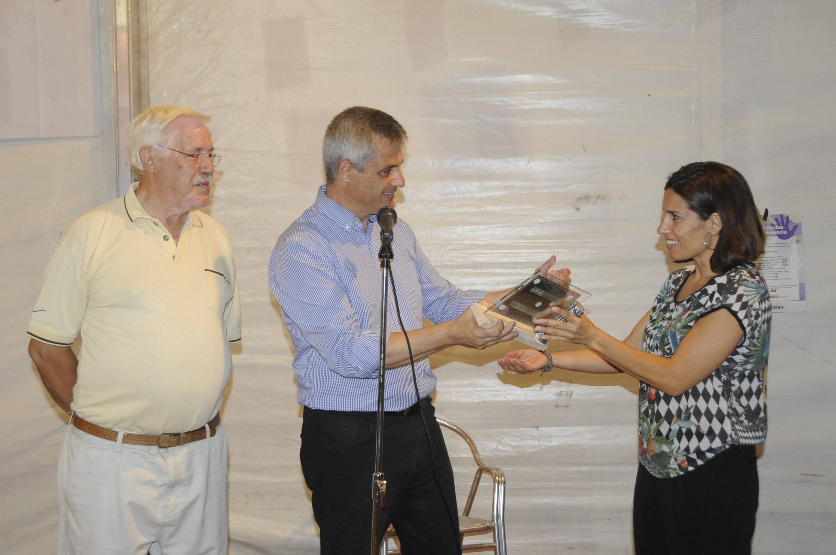 Imagen en alta resolución. Este enlace se abrirá mediante lightbox, puede haber un cambio de contextoEl Alcalde, David Lucas, junto al presidente de FAVEM, Carlos Piñeiro, hizo entrega de una placa de reconocimiento a la presidenta de la Asociación, María Presentación Abellán, que recogió su hija en su nombre.