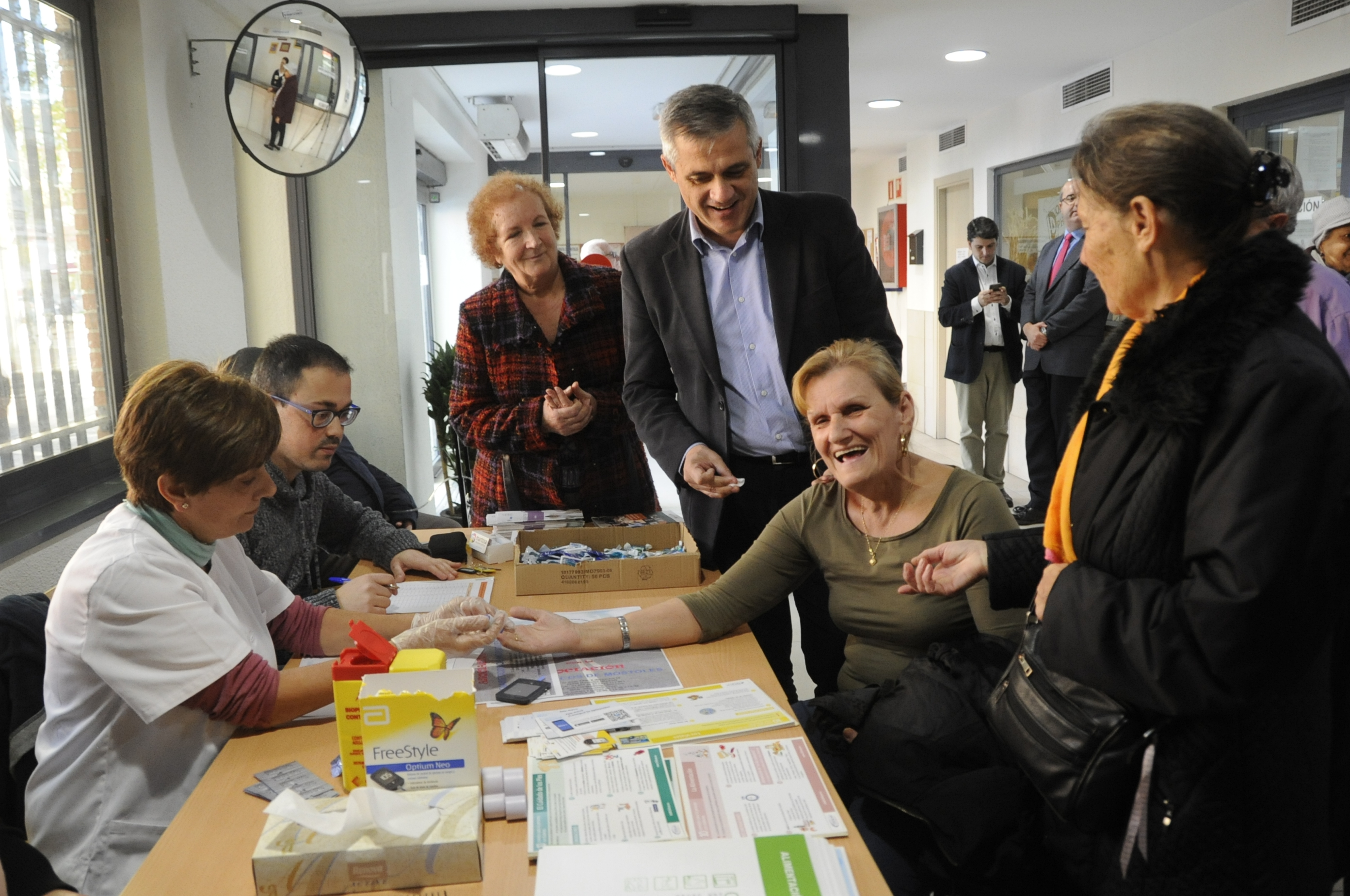 Imagen en alta resolución. Este enlace se abrirá mediante lightbox, puede haber un cambio de contextoEl Alcalde, David Lucas, ha visitado esta mañana acompañado por Ana María Rodrigo, Concejala de Igualdad, Sanidad y Mayores, la mesa informativa instalada por la Asociación de Diabéticos de Móstoles en el Centro de Mayores Juan XXIII en el marco del Día Mundial de la Diabetes (que se celebra todos 14 de noviembre) y en la que se han realizado medidas de glucosa a todas las personas que se han acercado.