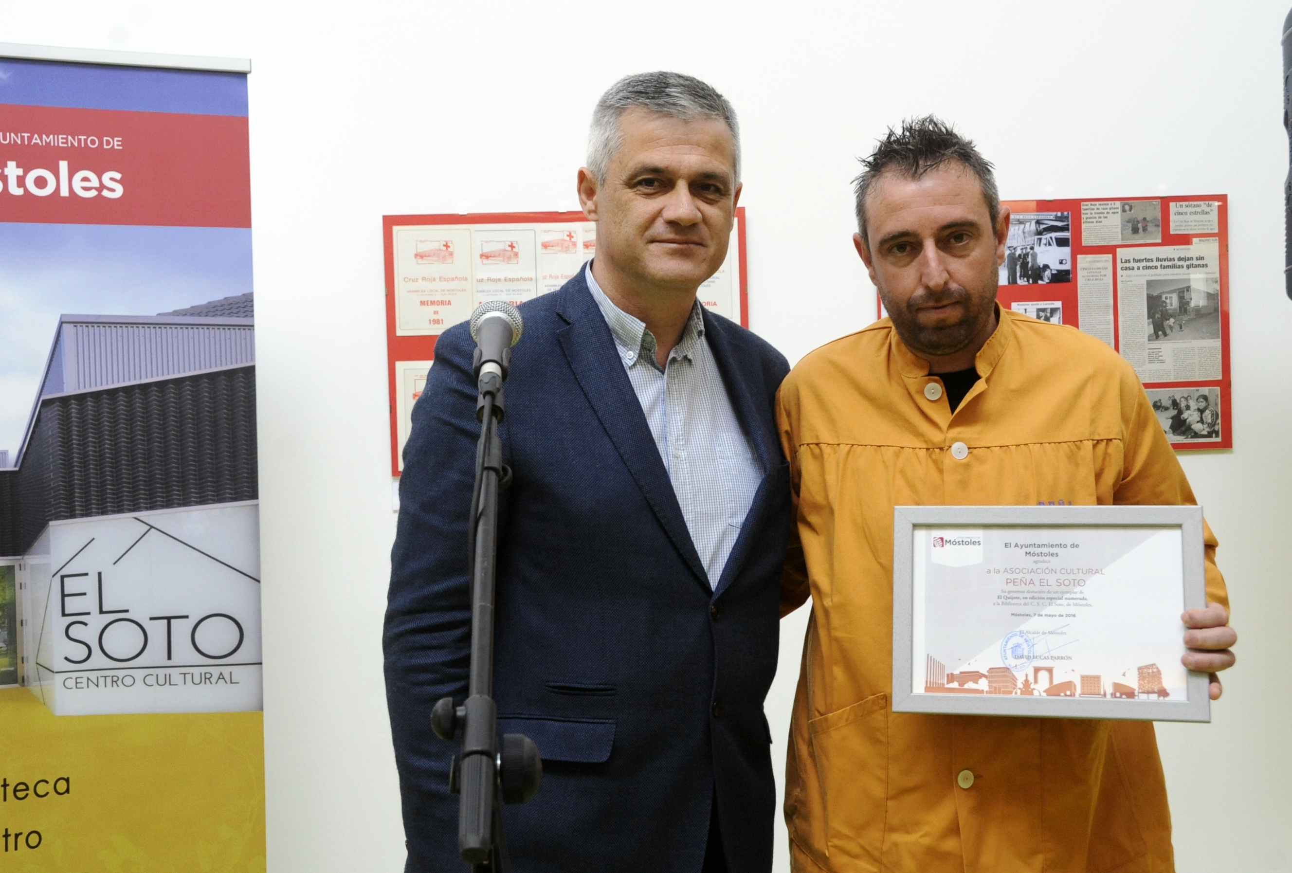 La recepción del ejemplar estuvo a cargo del alcalde de Móstoles, David Lucas, quien a su vez entregó al presidente de la asociación, Alejandro González Gómez, un documento acreditativo de la cesión del libro. Al acto asistió también el concejal de Cultura y Deportes, Agustín Martín.