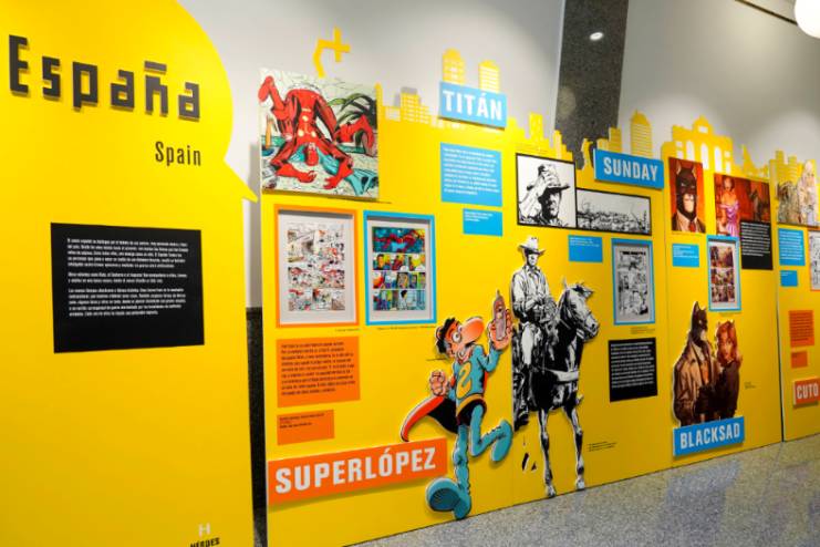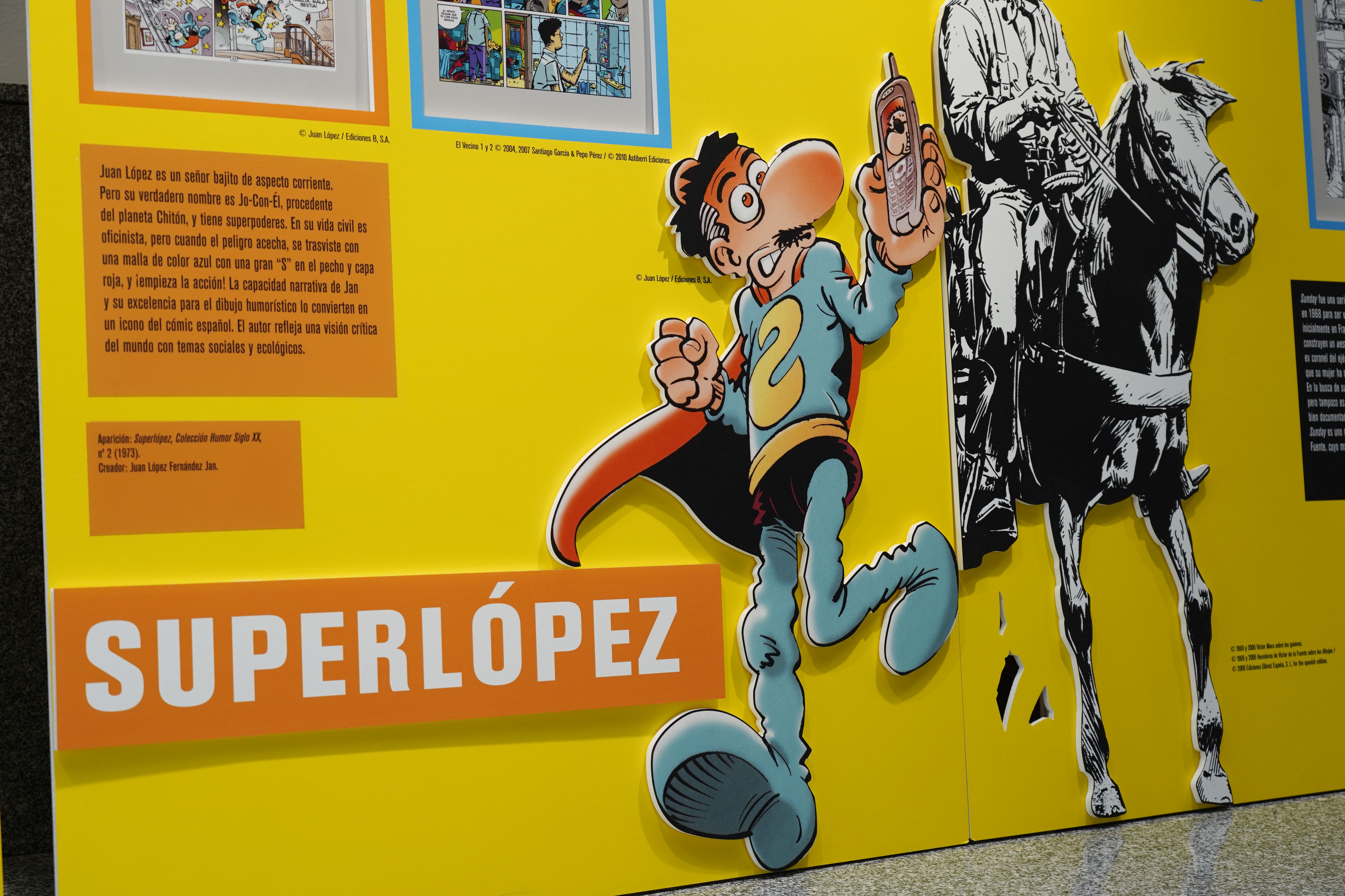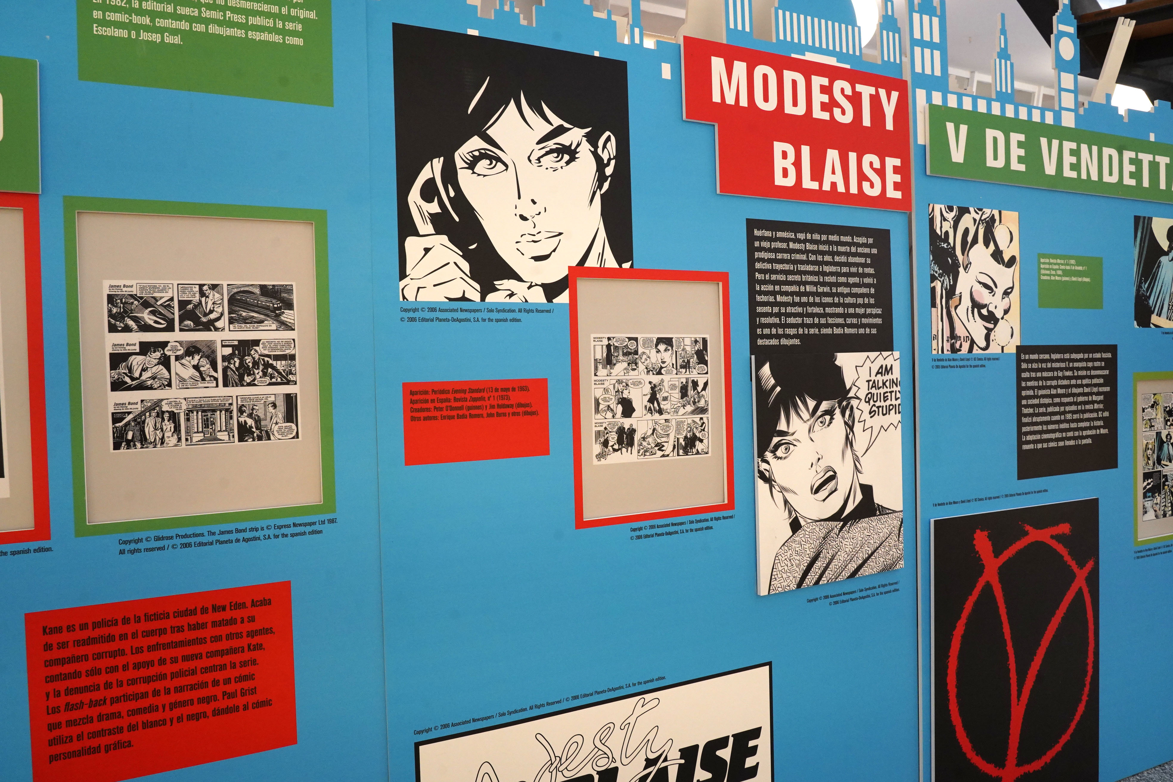 En esta exposición itinerante de la Dirección General del Libro y Fomento de la Lectura, del Ministerio de Cultura y Deporte, incluida en las actividades programadas con motivo de la celebración del Día del Libro por la Concejalía de Cultura de Móstoles, personajes internacionales como Astérix, Blueberry, Modesty Blaise, James Bond, Corto Maltés, Valentina, Lucky Luke, Blake y Mortimer, además de los españoles Capitán Trueno, Mortadelo y Filemón, Torpedo, El Cachorro, Makinavaja, Makoki o Superlopez, protagonizan los paneles informativos de la muestra que también reúne ejemplares de distintos cómics.