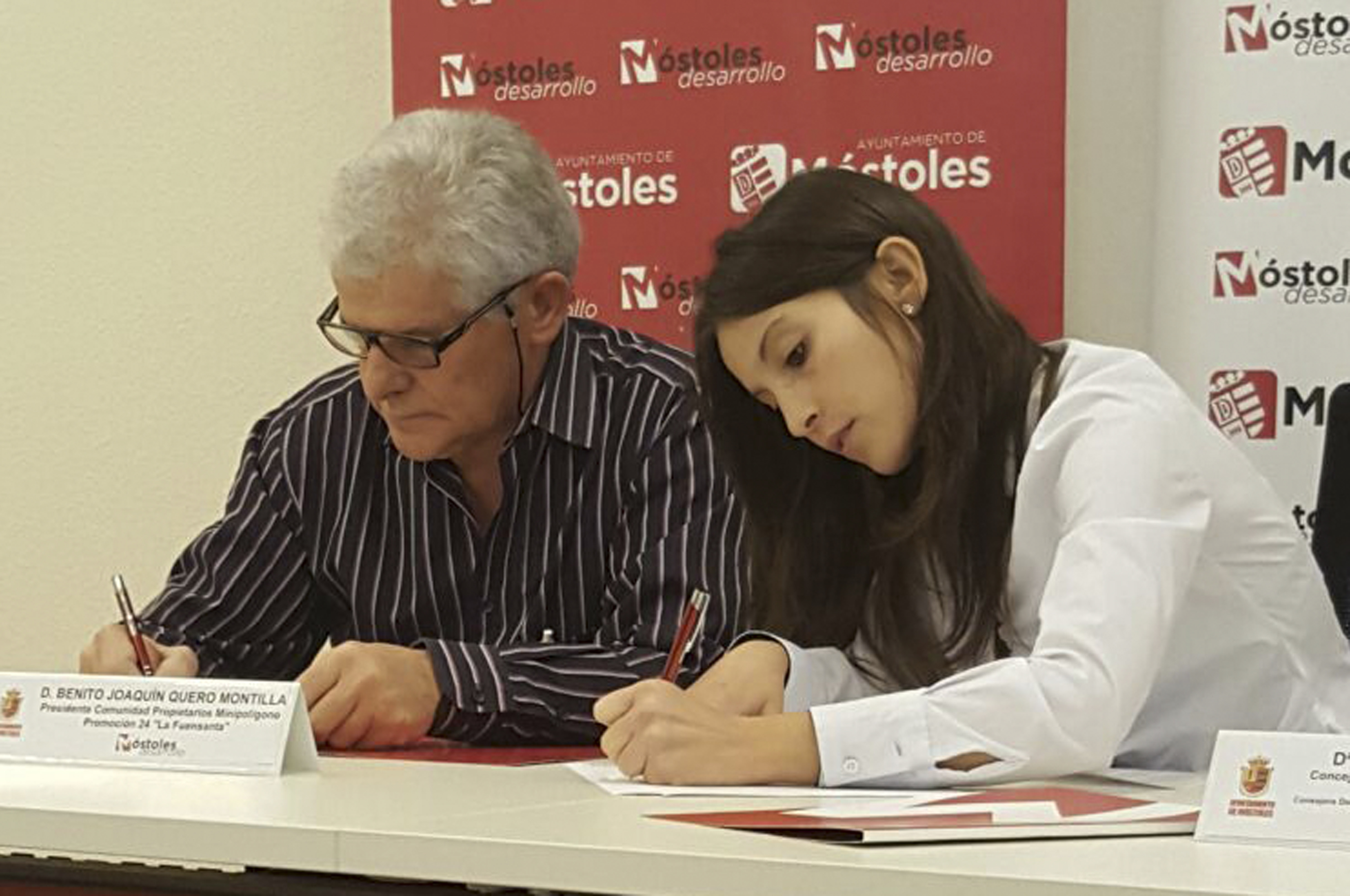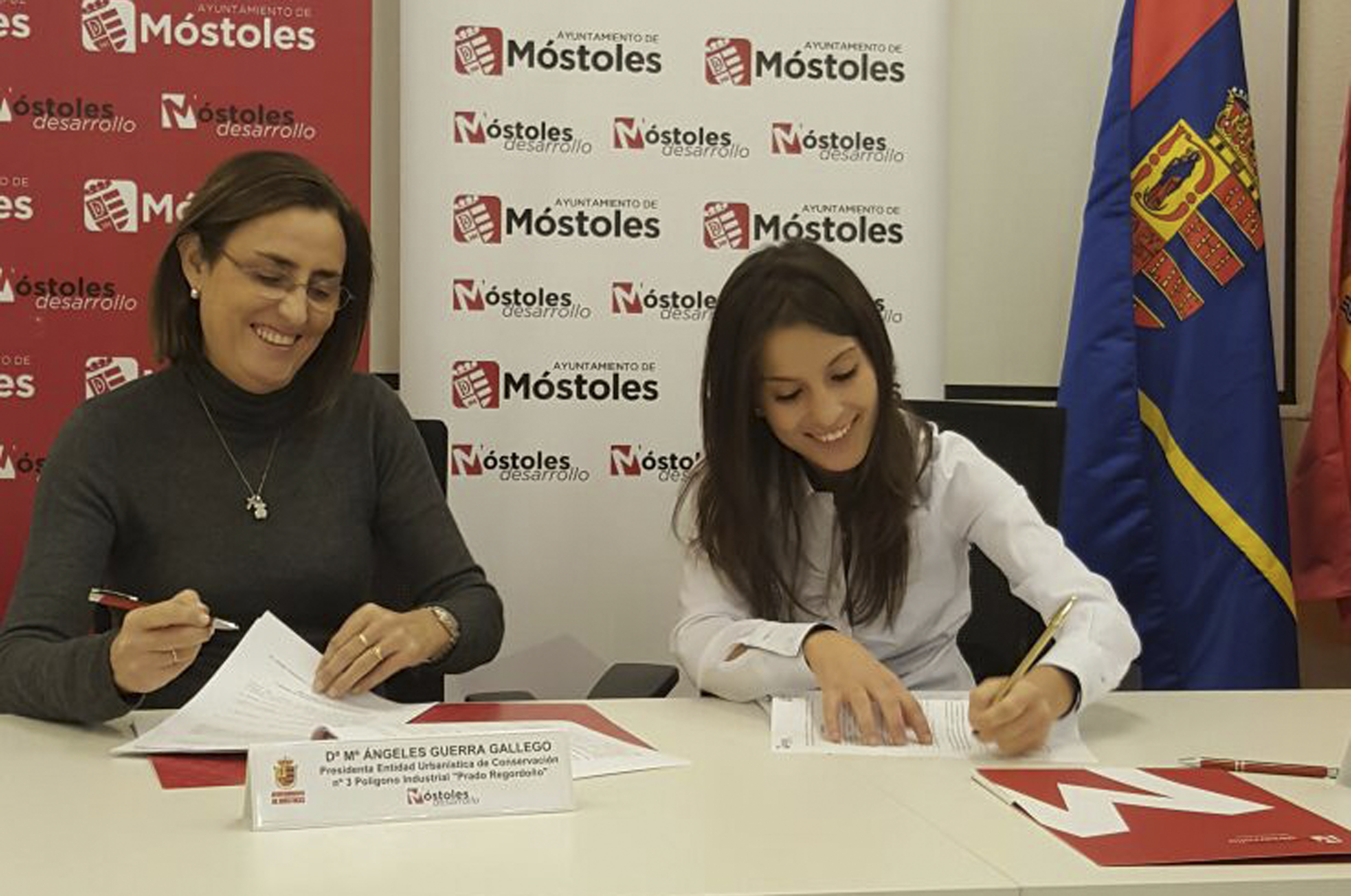La concejala de Desarrollo Económico, Empleo y Nuevas Tecnologías, Jessica Antolín, ha firmado esta mañana varios convenios de colaboración con los responsables de los polígonos industriales del municipio, que han presentado proyectos para la convocatoria de ayudas "Fondo de Industria" 2016, que gestiona Móstoles Desarrollo´.